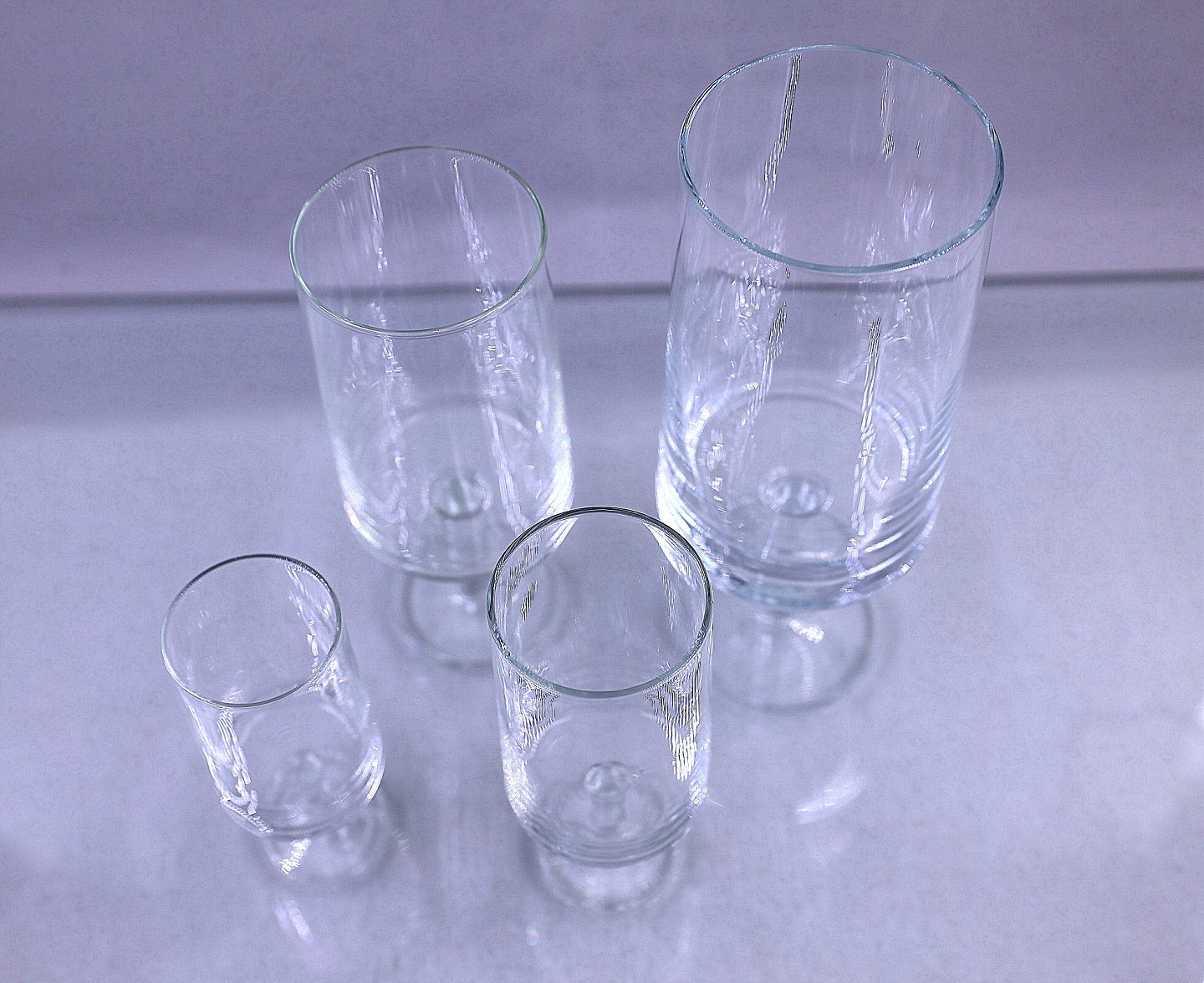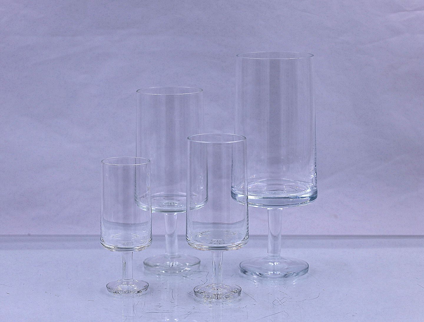 Stamme Glasservice, Kastrup Glasværk 1958-1973. Glassene er på rund stilk og formen er på glasset er cylindrisk