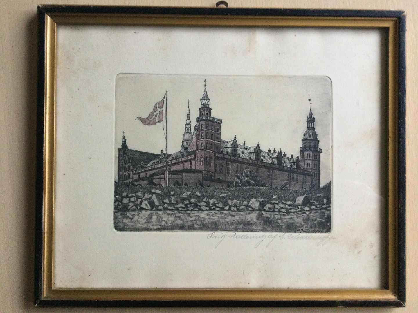 Radering af Carl Wedderkopp-Jensen - Kronborg Slot, Helsingør.