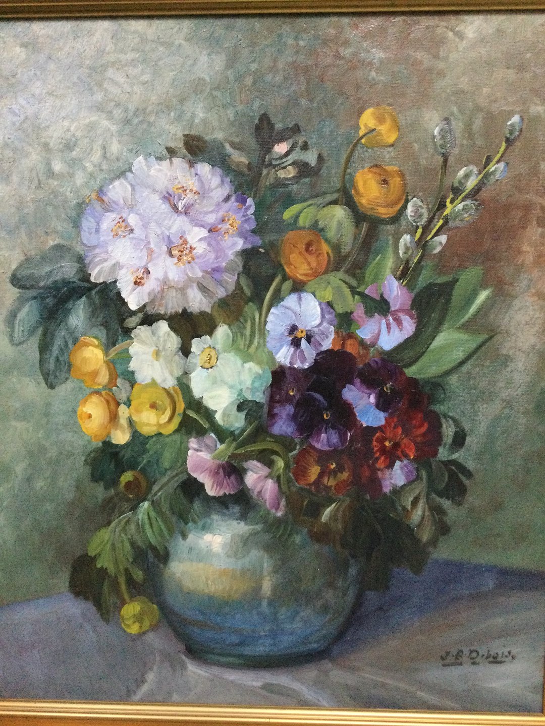 Maleri af Ingeborg Debois - Vase med stedmoderblomster, engblommer m.fl.