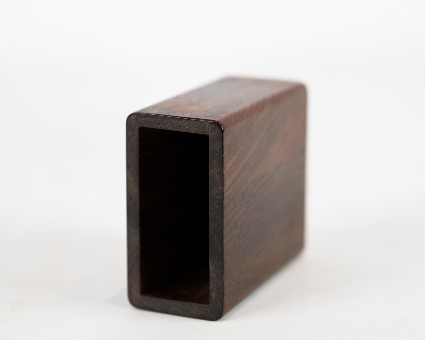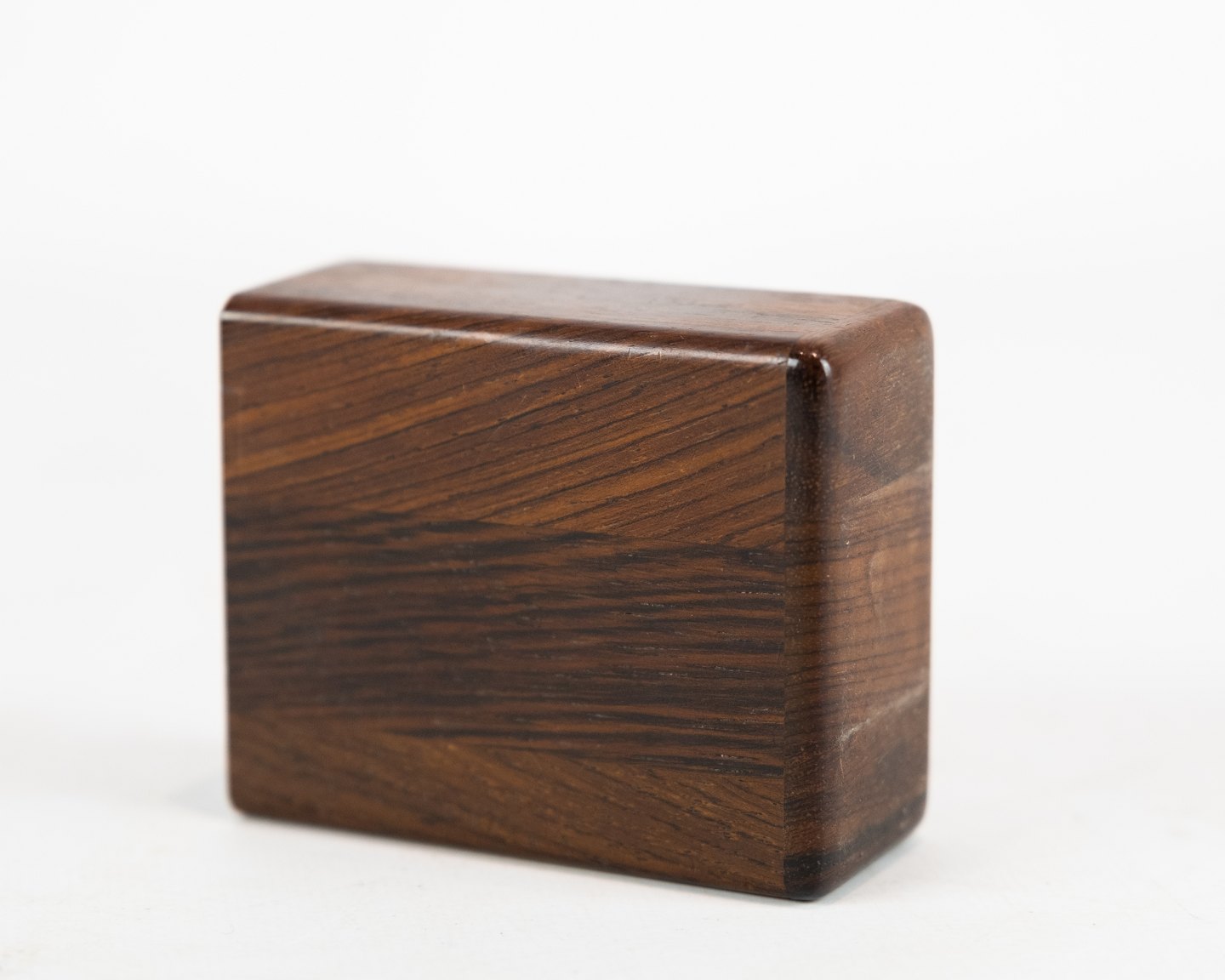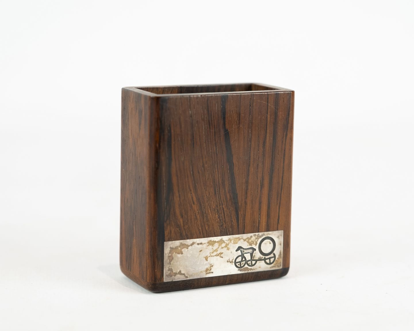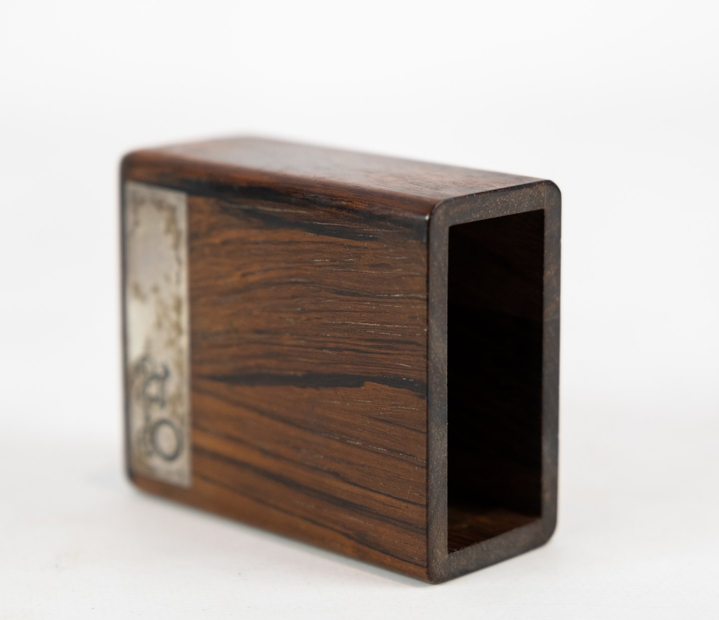 Æske i palisander dekoreret med hestevogn og metal, i flot brugt stand.