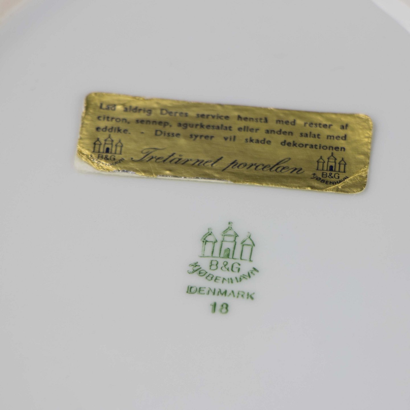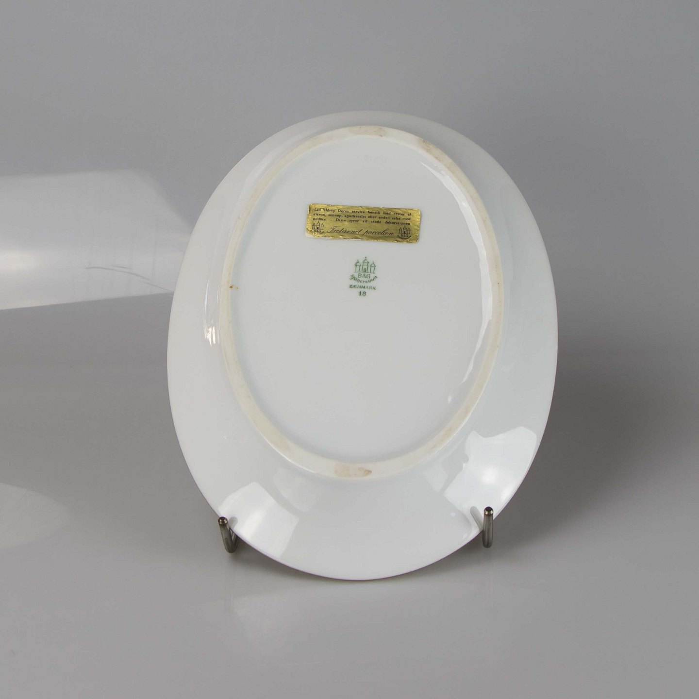 Fad i hvidt porcelæn med lysegrøn kant og gylden dekoration