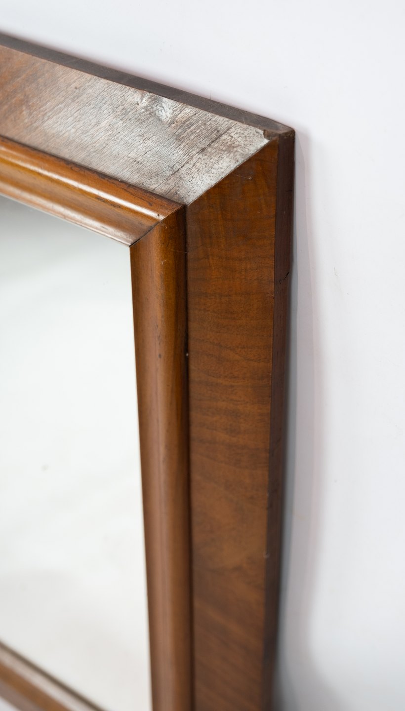 Spejl i nøddetræ af dansk design fra 1920erne. Spejlet er i flot brugt stand.