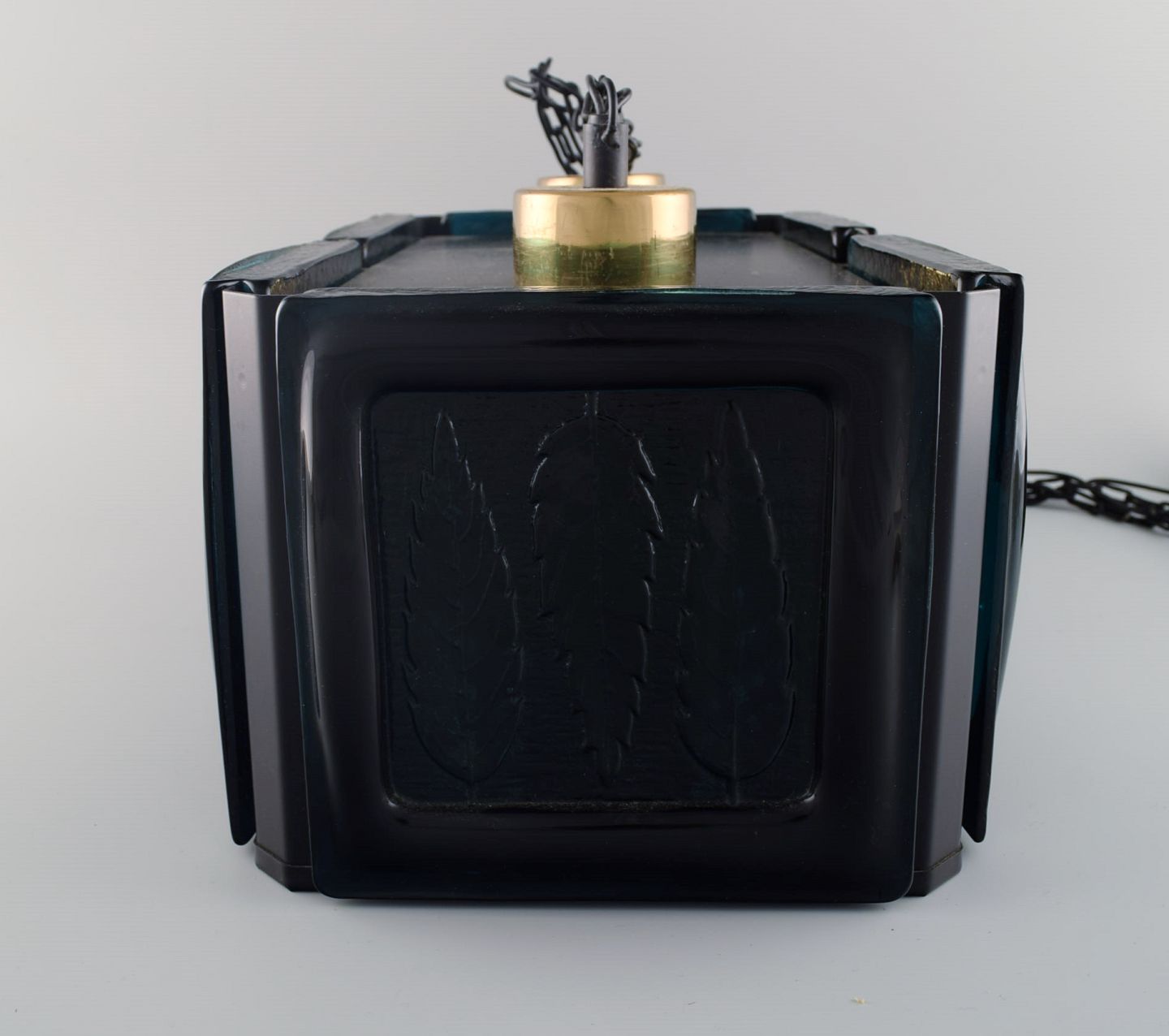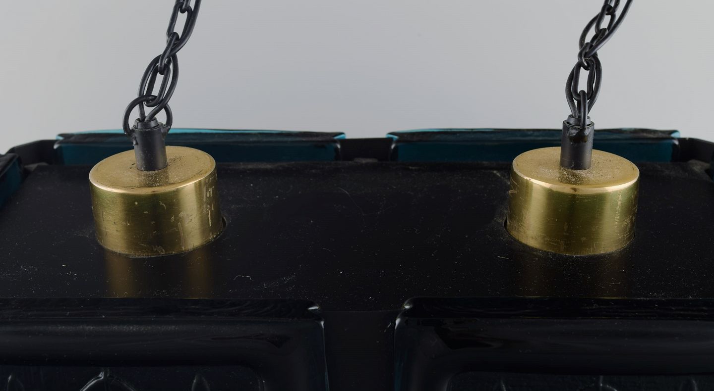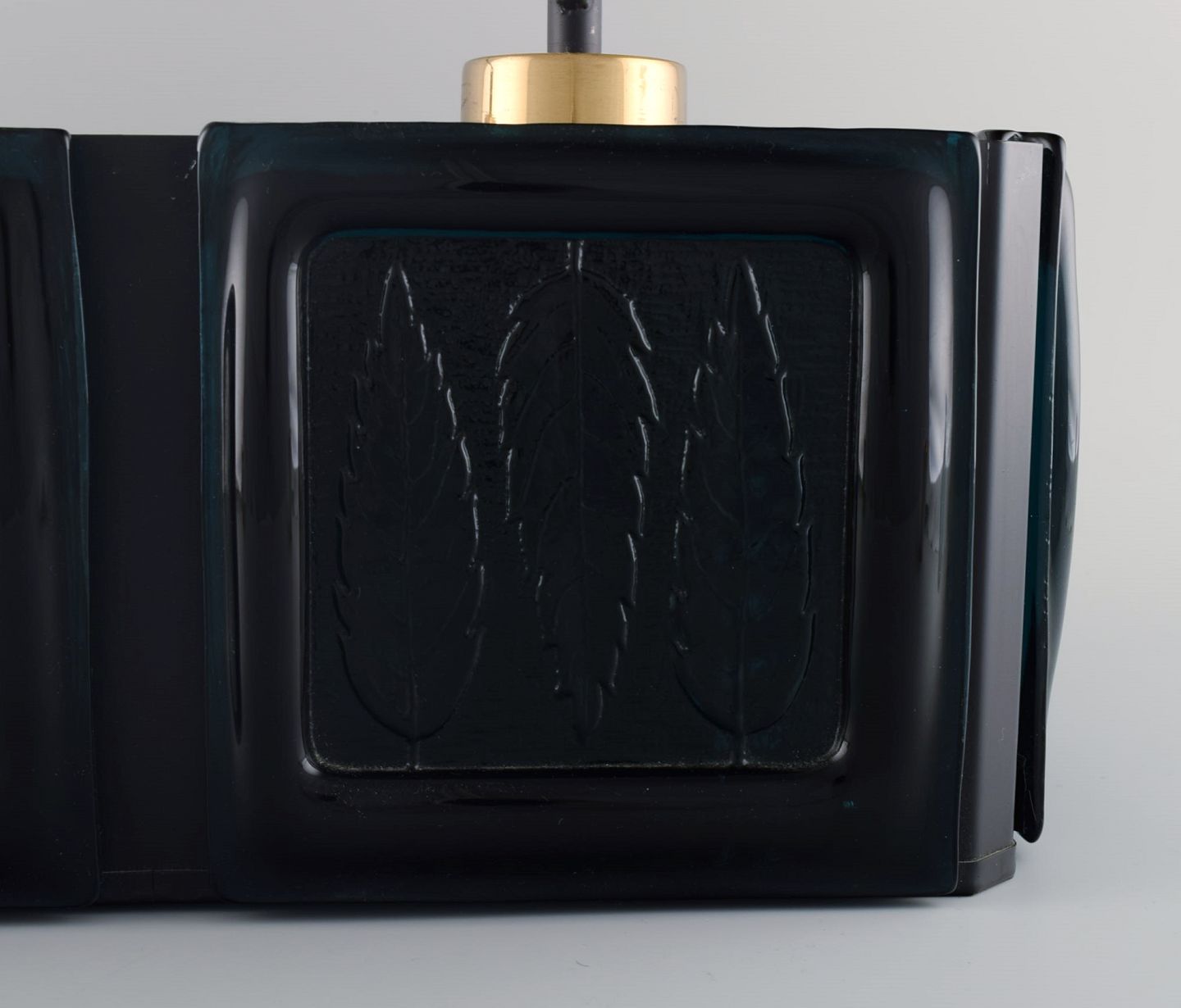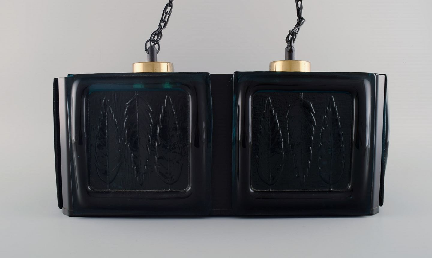 Svensk design. Loftlampe i sortlakeret metal og mundblæst kunstglas med blade i relief. 1960/70'erne.