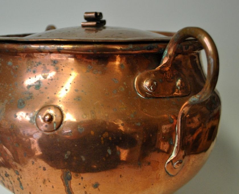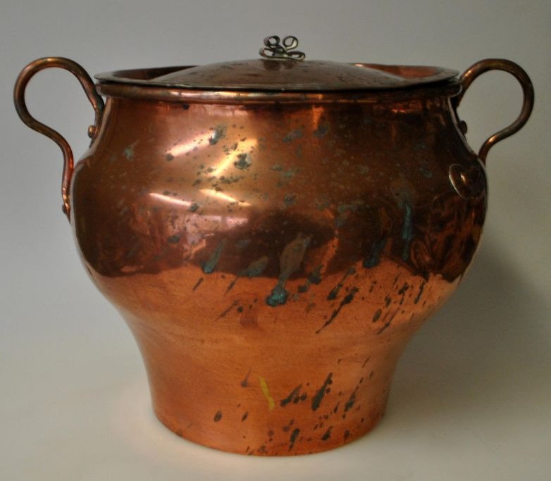 Empire food bucket in copper with handles and lid, 19th century Denmark.