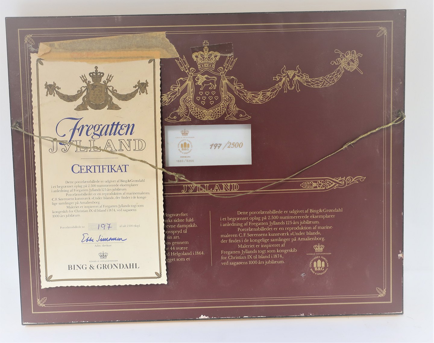 Bing & Grøndahl. Porcelæn. Billed af "Fregatten Jylland. Mål : Bredde 38* 30 cm. Der er produceret 2500, og denne er no. 197