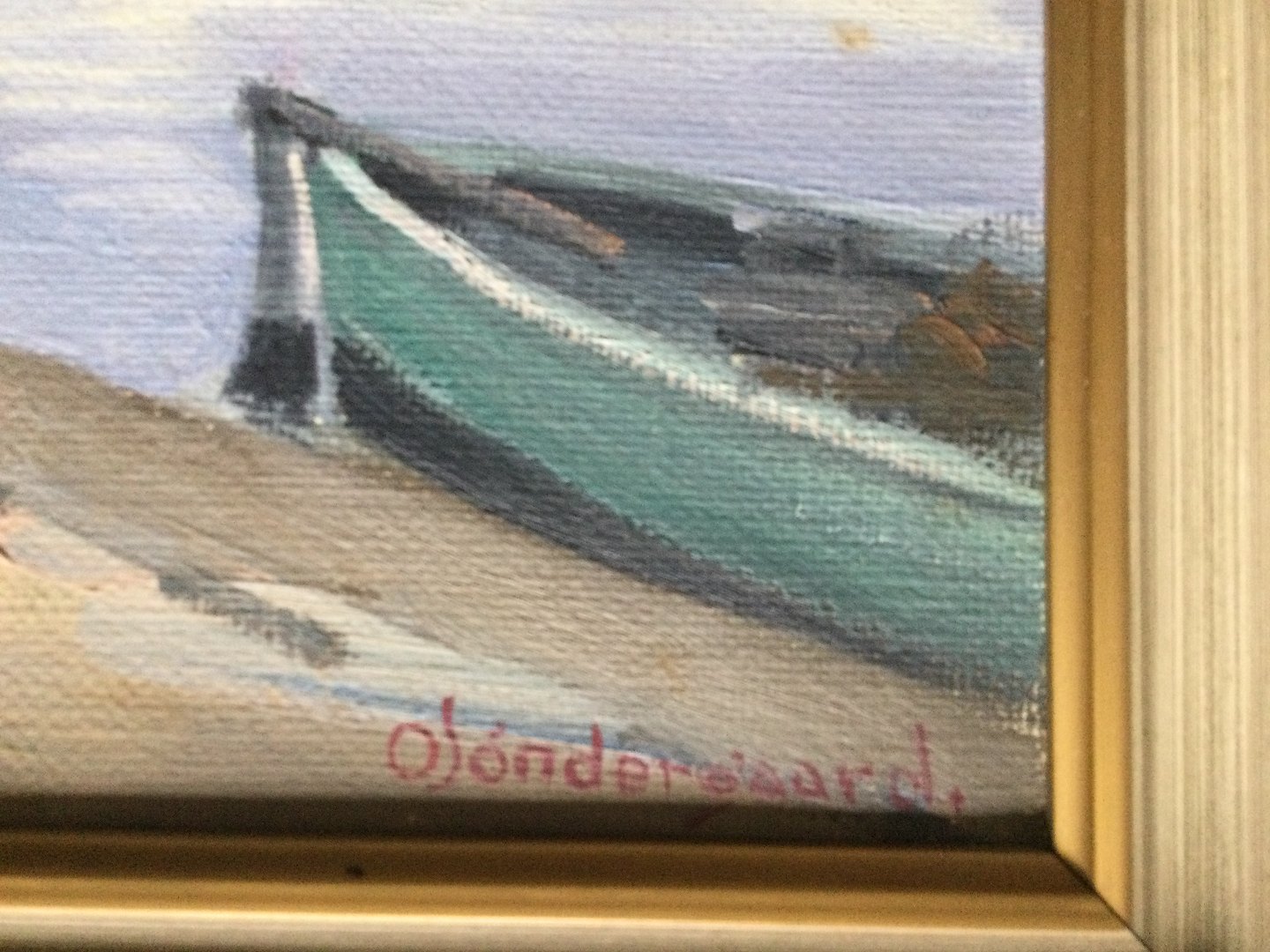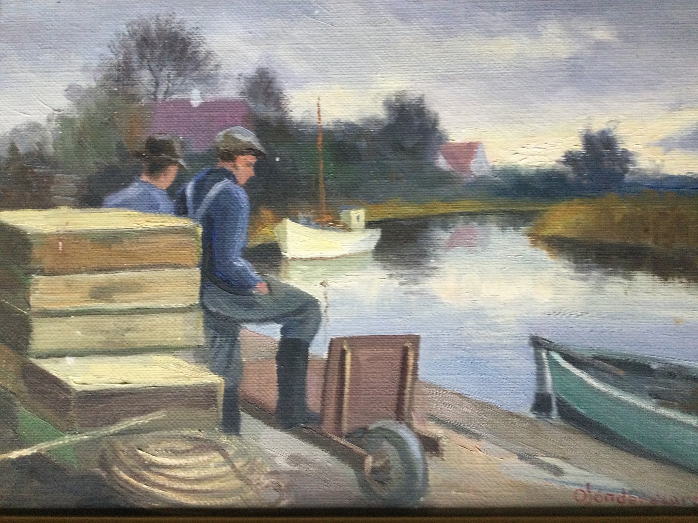 Maleri - Oluf Søndergaard - "Fiskere på molen"