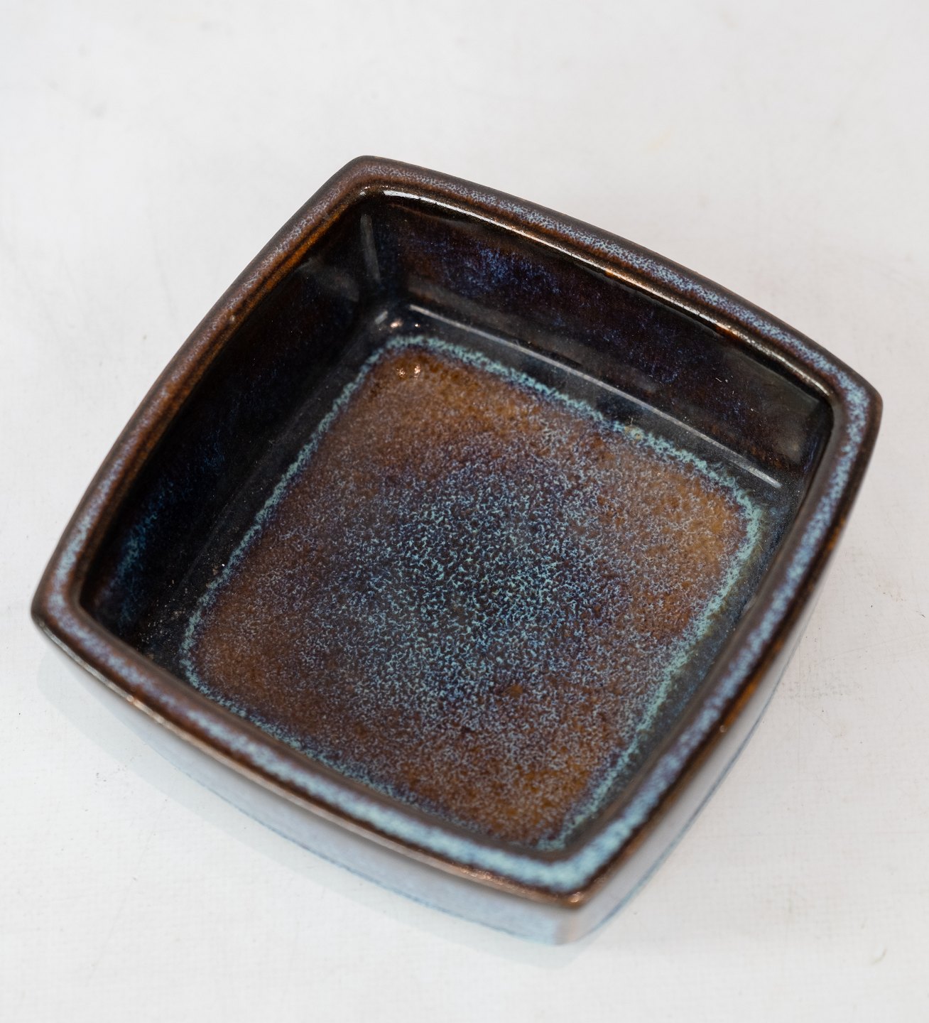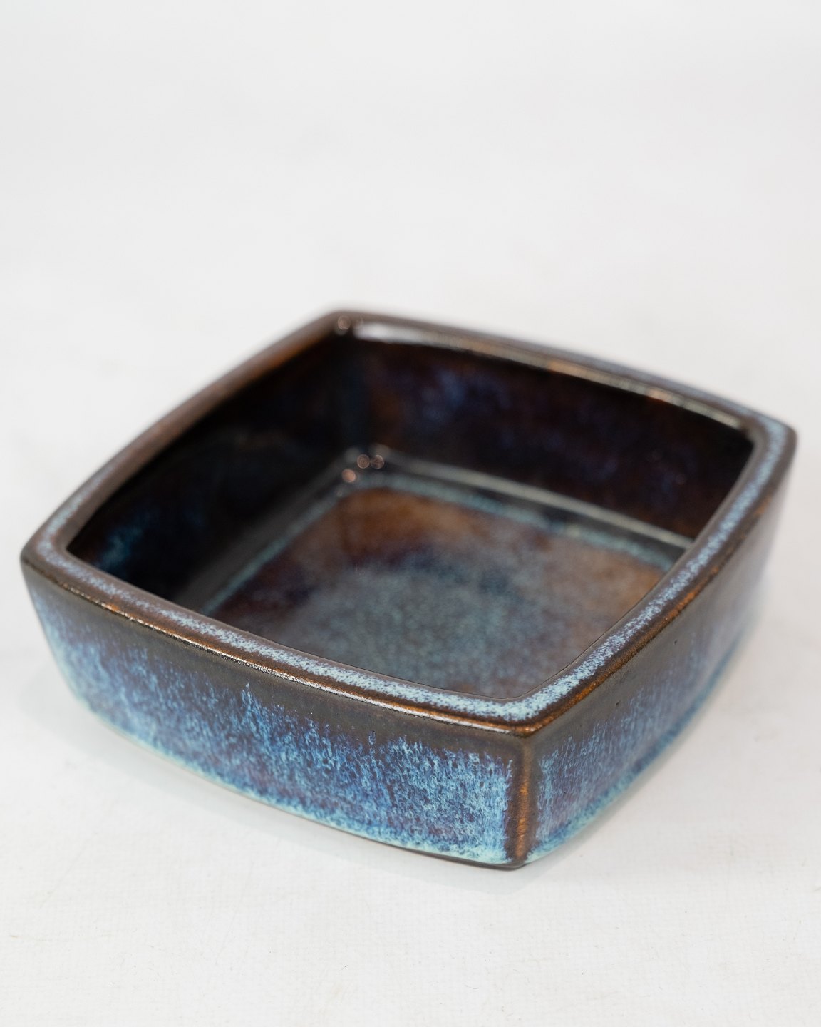 Keramik skål i blå og brune nuancer af Stogo Danmark og nummereret 423.