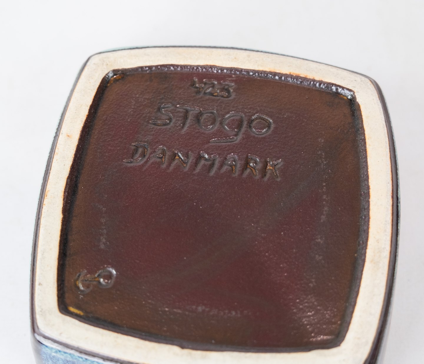 Keramik skål i blå og brune nuancer af Stogo Danmark og nummereret 423. Skålen er i flot brugt stand.