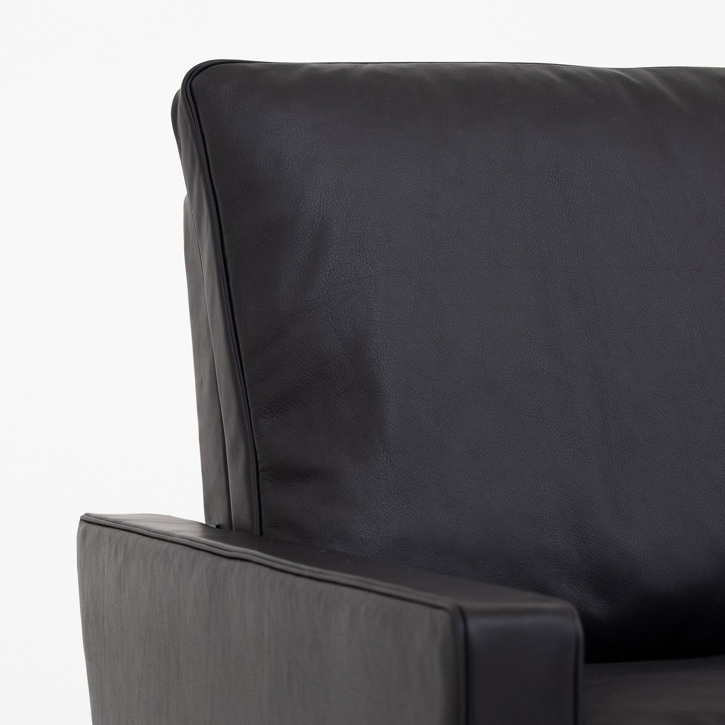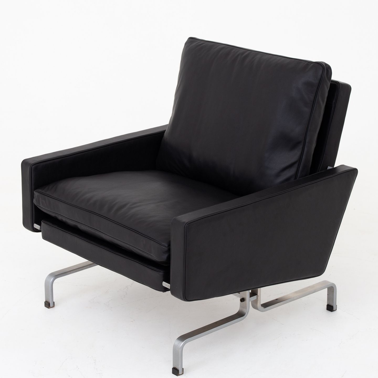 PK 31/1 - Nybetrukket lænestol i Shade-læder (Pitch Black) på stel af stål. KLASSIK tilbyder polstring af lænestolen med stof eller læder efter eget valg.