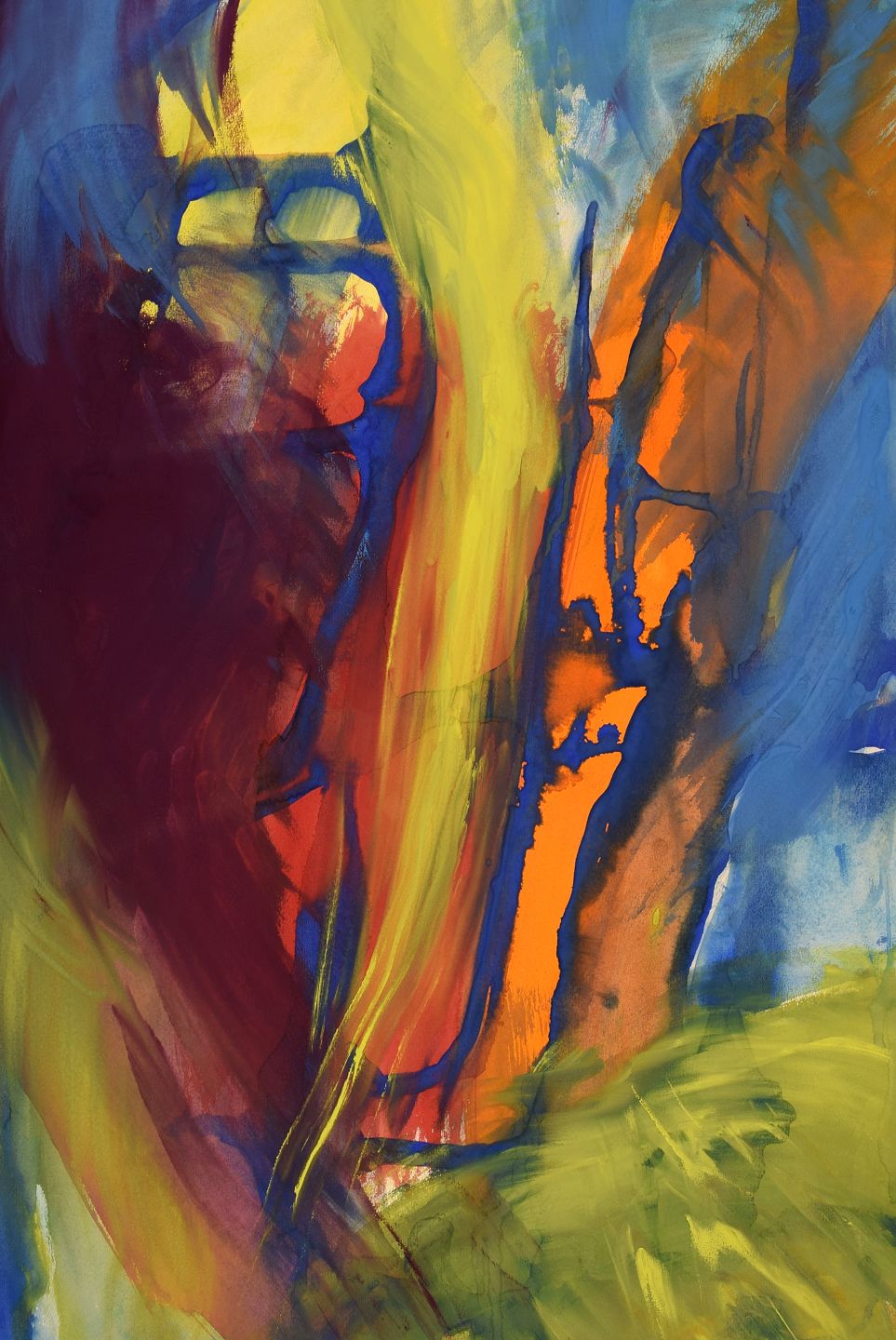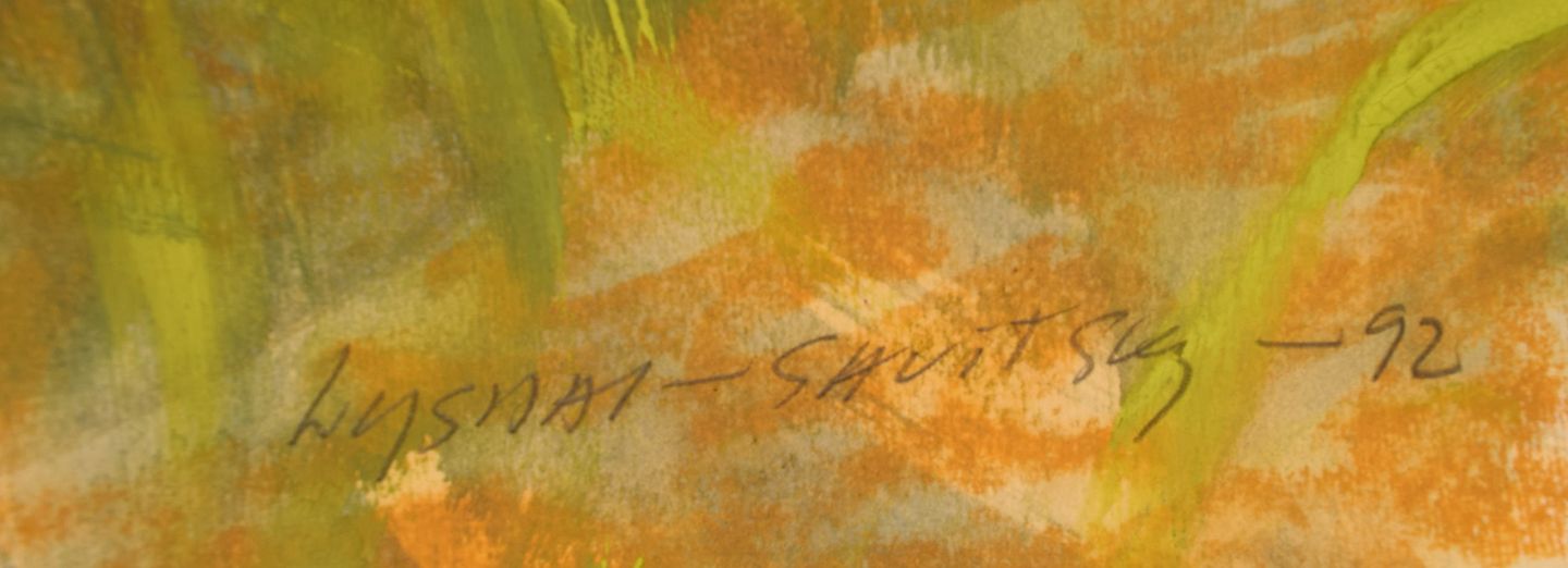 Ivy Lysdal, f 1937. Dansk keramiker og kunstmaler. Gouache på karton. Abstrakt modernistisk maleri. Koloristisk palette. Dateret 1992.