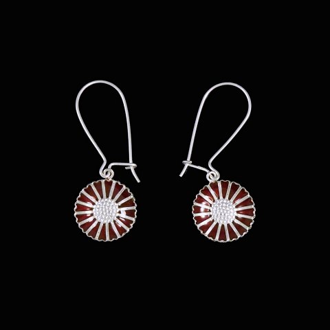 Bernhard Hertz. Marguerit / Daisy Ørekroge i sterling sølv med bordeaux emalje. 18mm