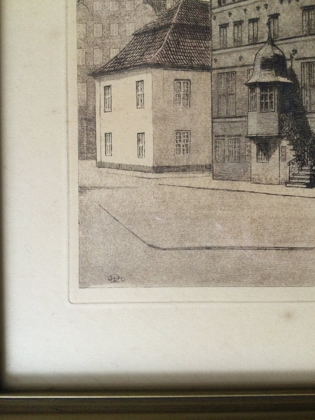 Radering af Peter Holm - Jens Bangs Stenhus, Østeraa, Aalborg