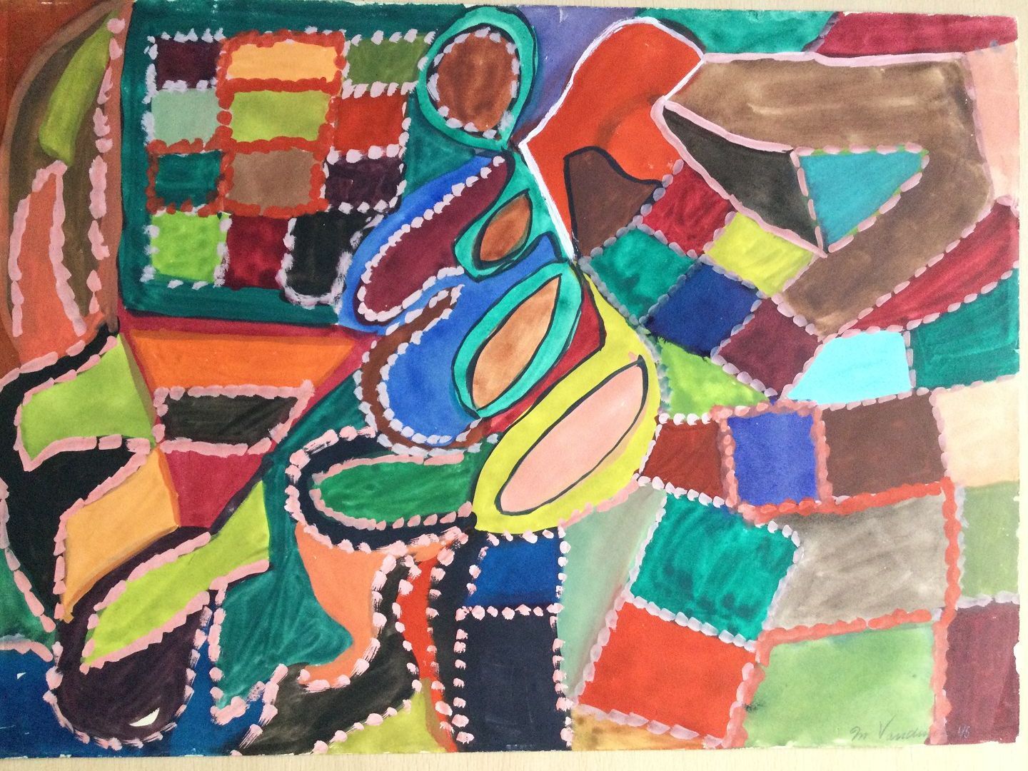 Akvarel af Marie Vandmose - Abstraktion 1945.