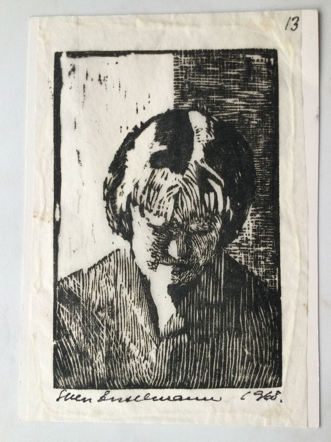 Træsnit af Sven Enselmann - Portræt af en kvinde 1968.