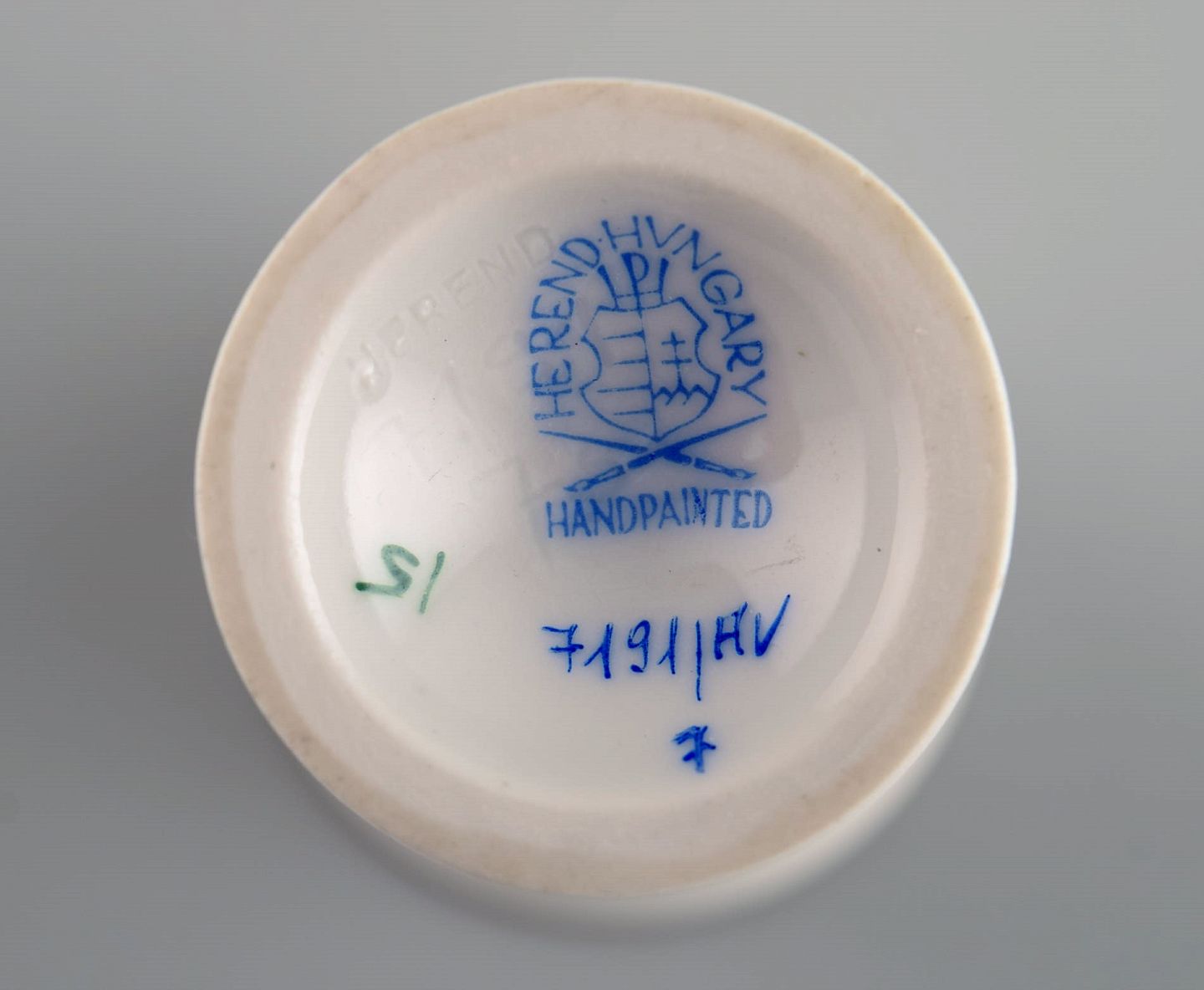 Two Herend vases and a small dish / bowl in hand-painted porcelain. 1980s.