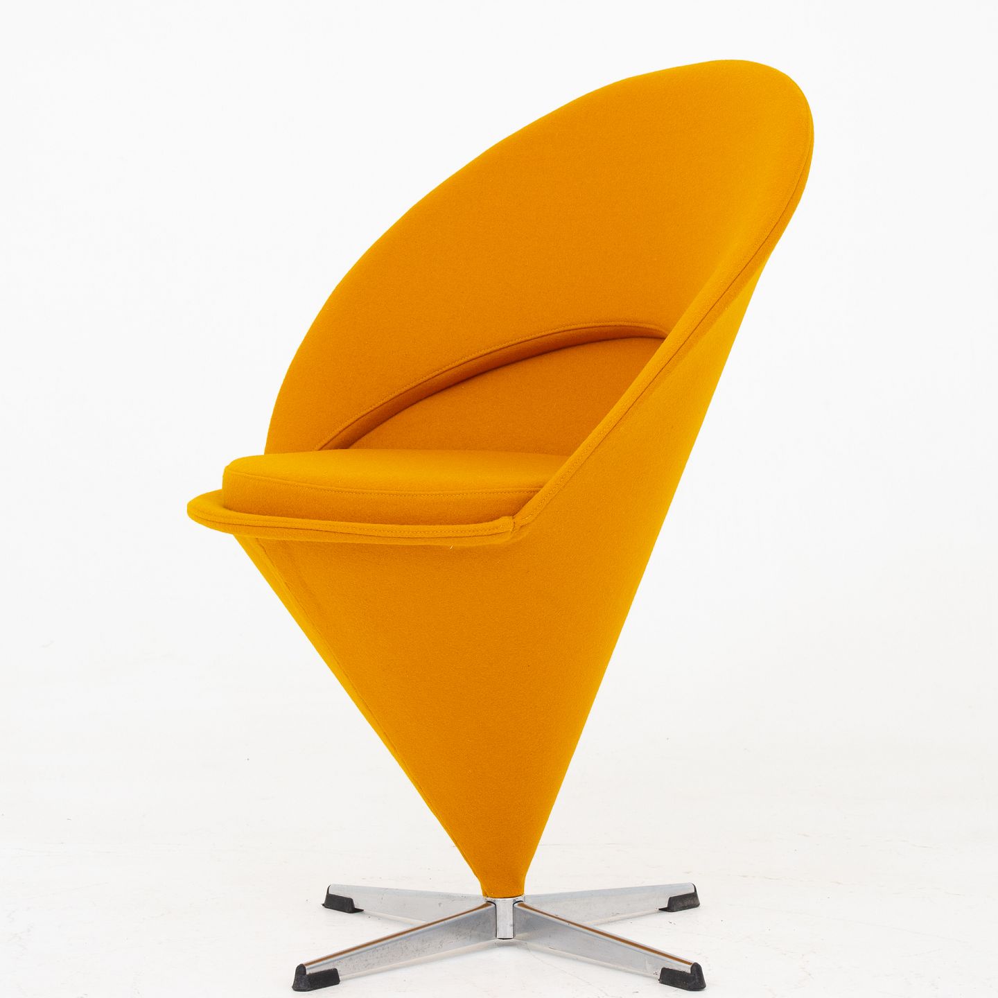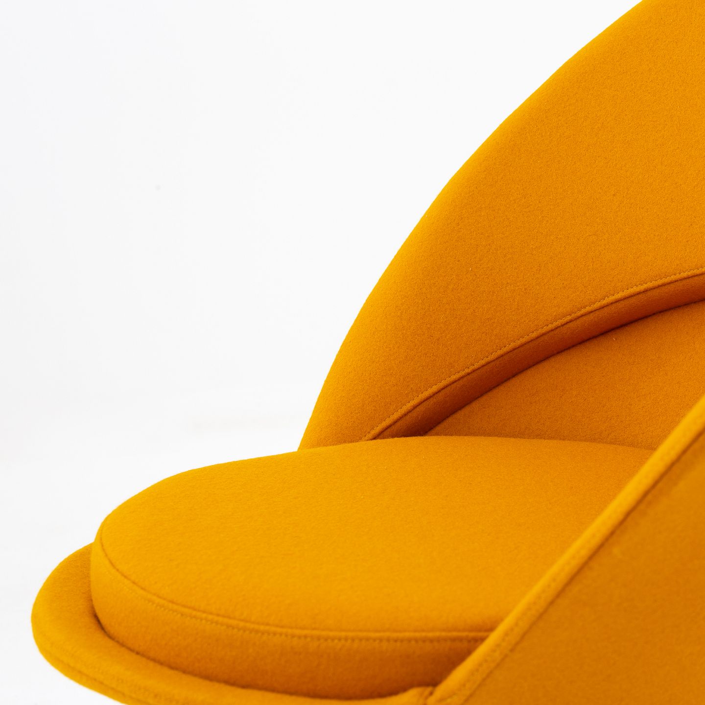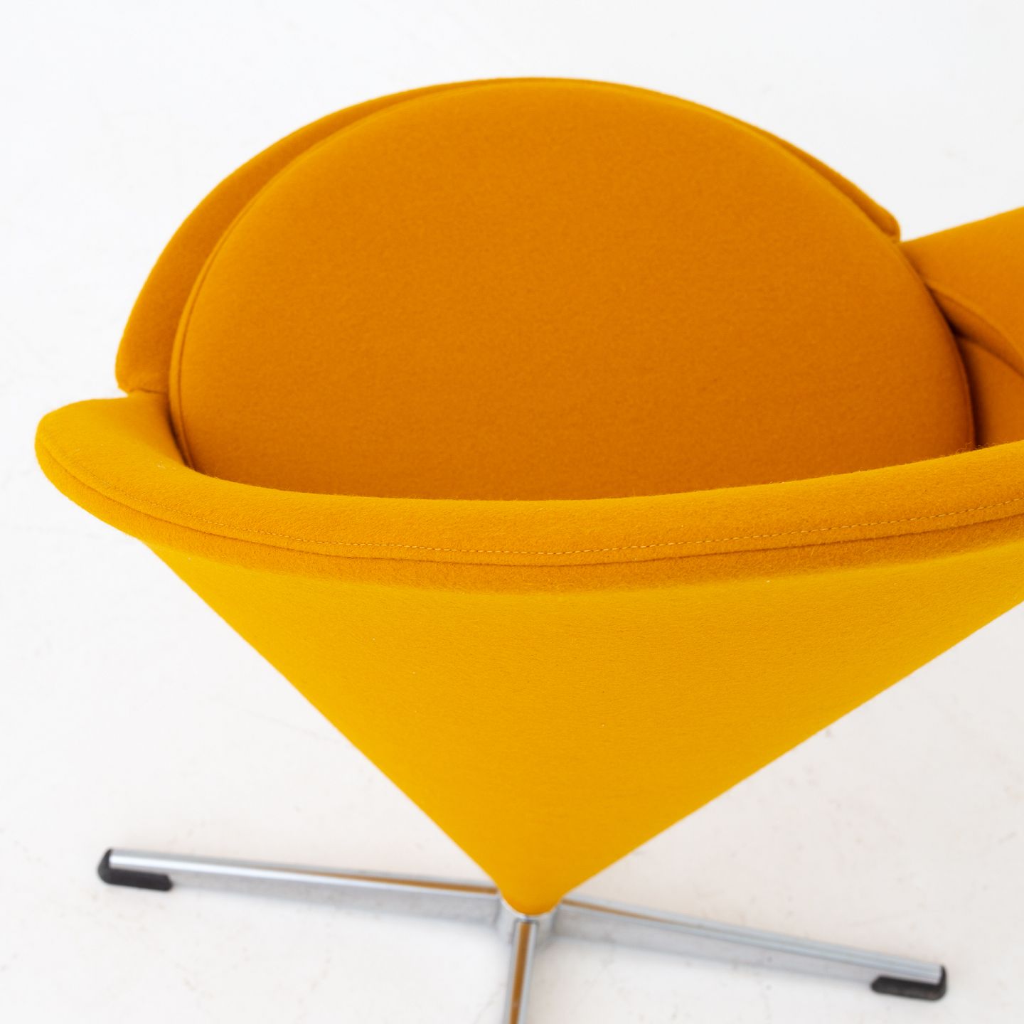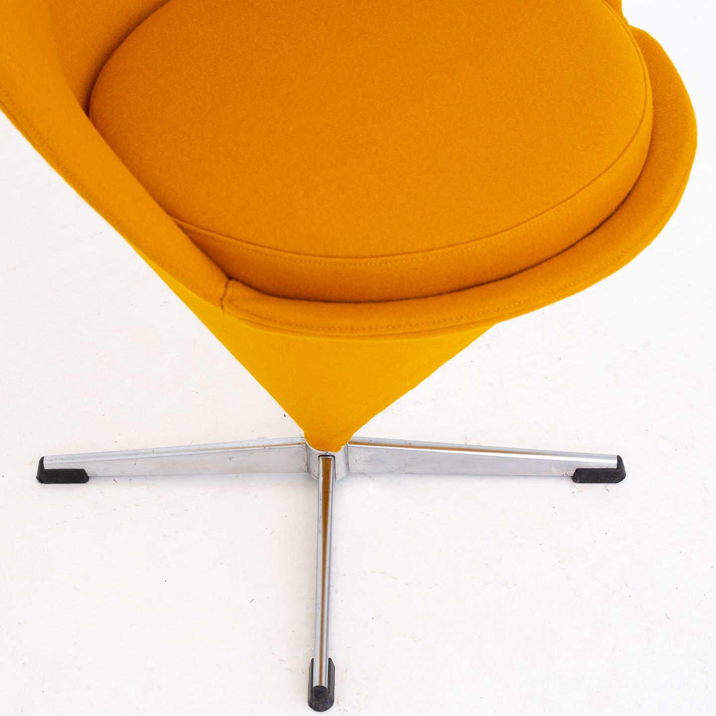 Kræmmerhusstol/Cone Chair, nybetrukket i gult tekstil (Divina 3, farve 462). Fås i tekstil eller læder efter eget valg.