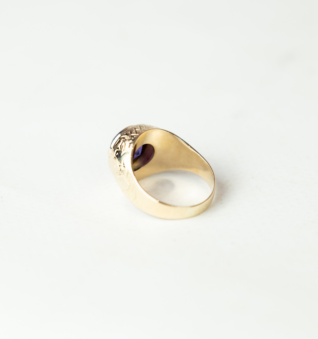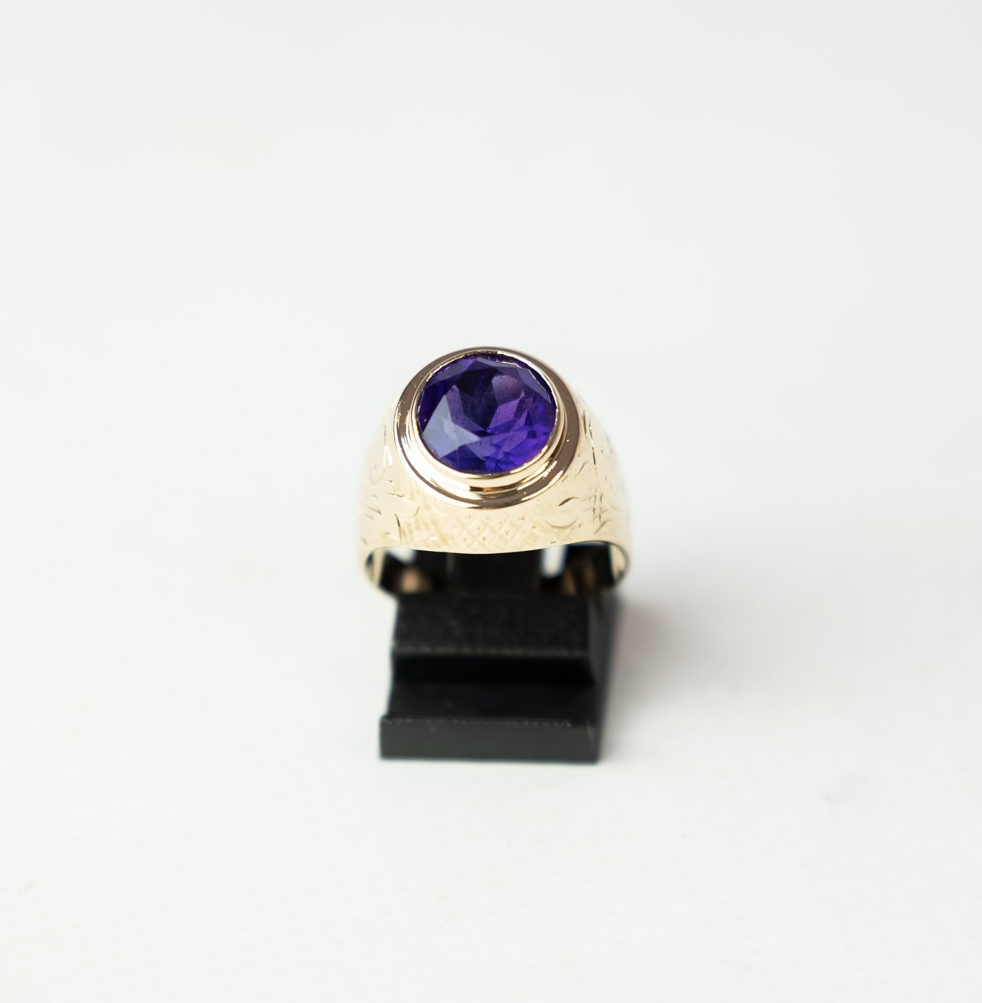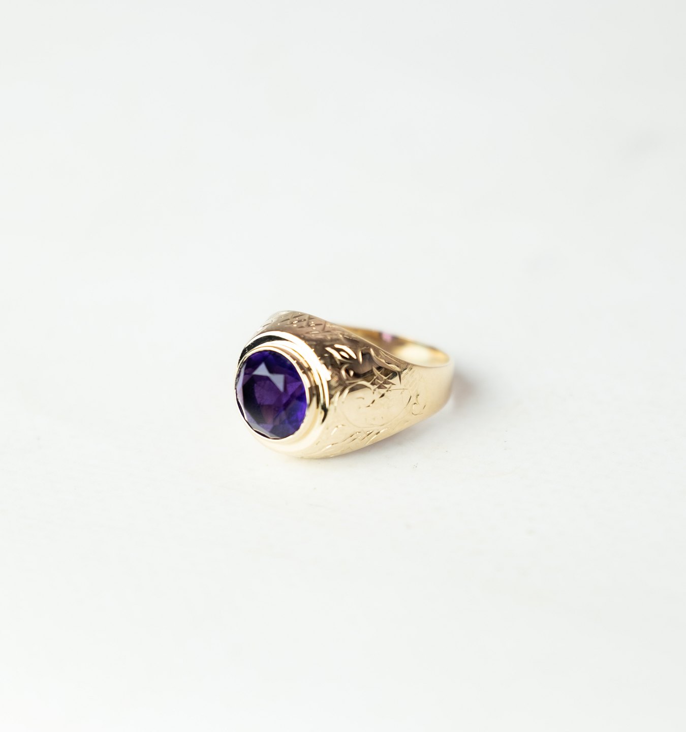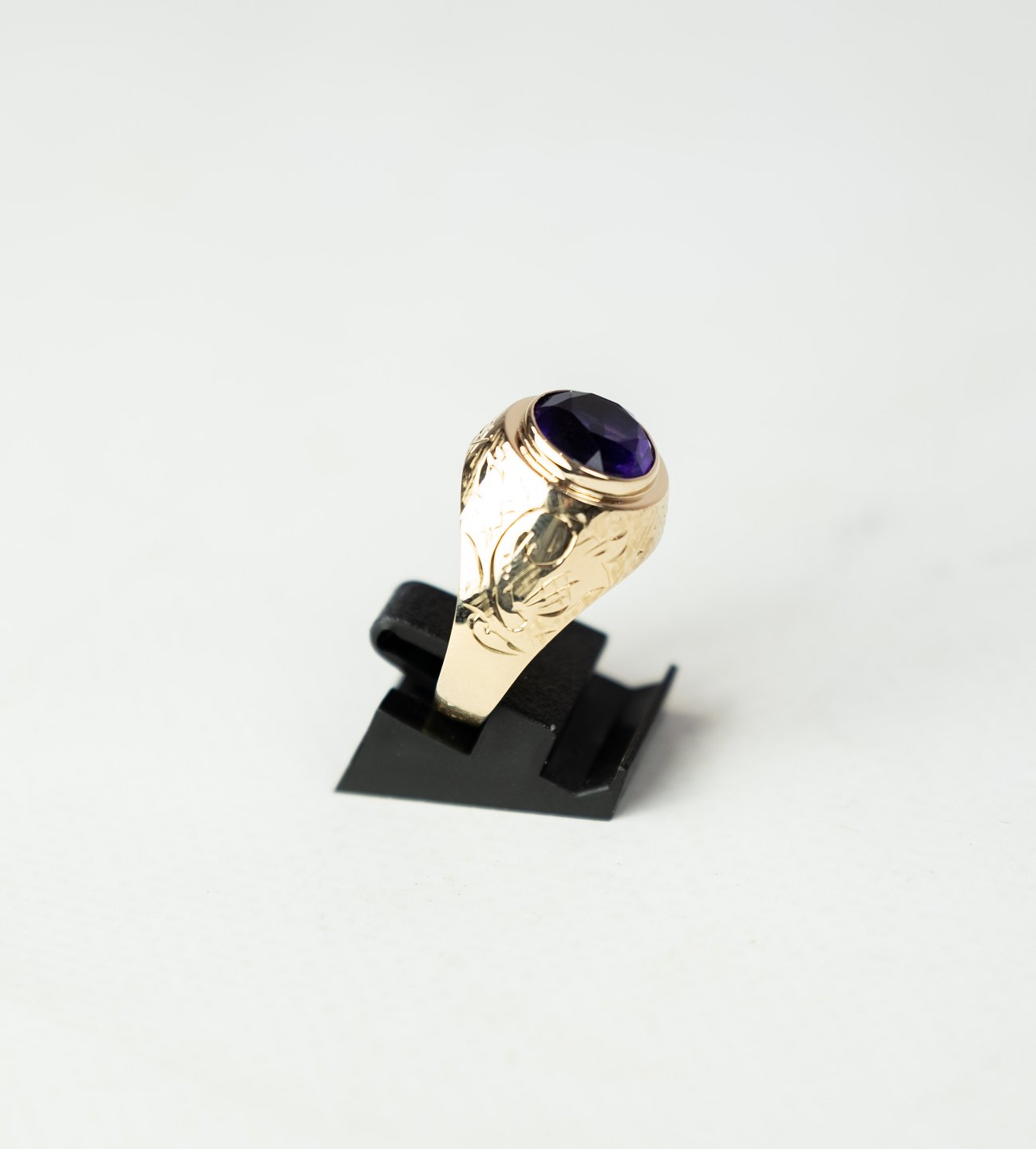 Ring dekoreret med ametyst og af 14 karat guld, stemplet JØ.