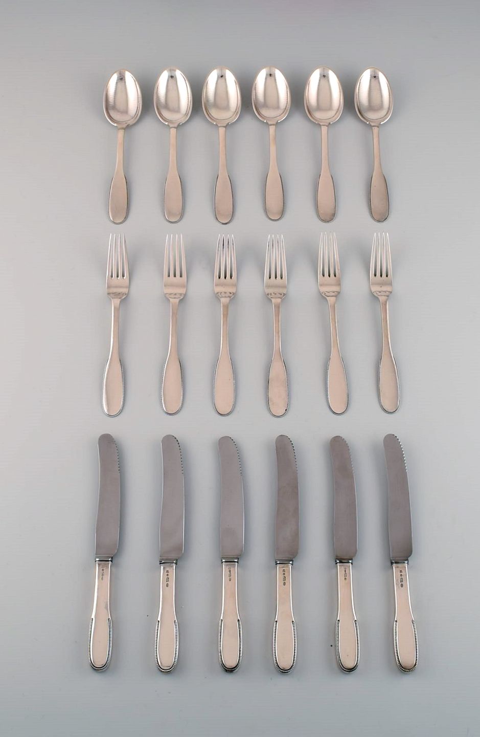 Bestående af seks middagsknive, seks middagsgafler og seks spiseskeer.