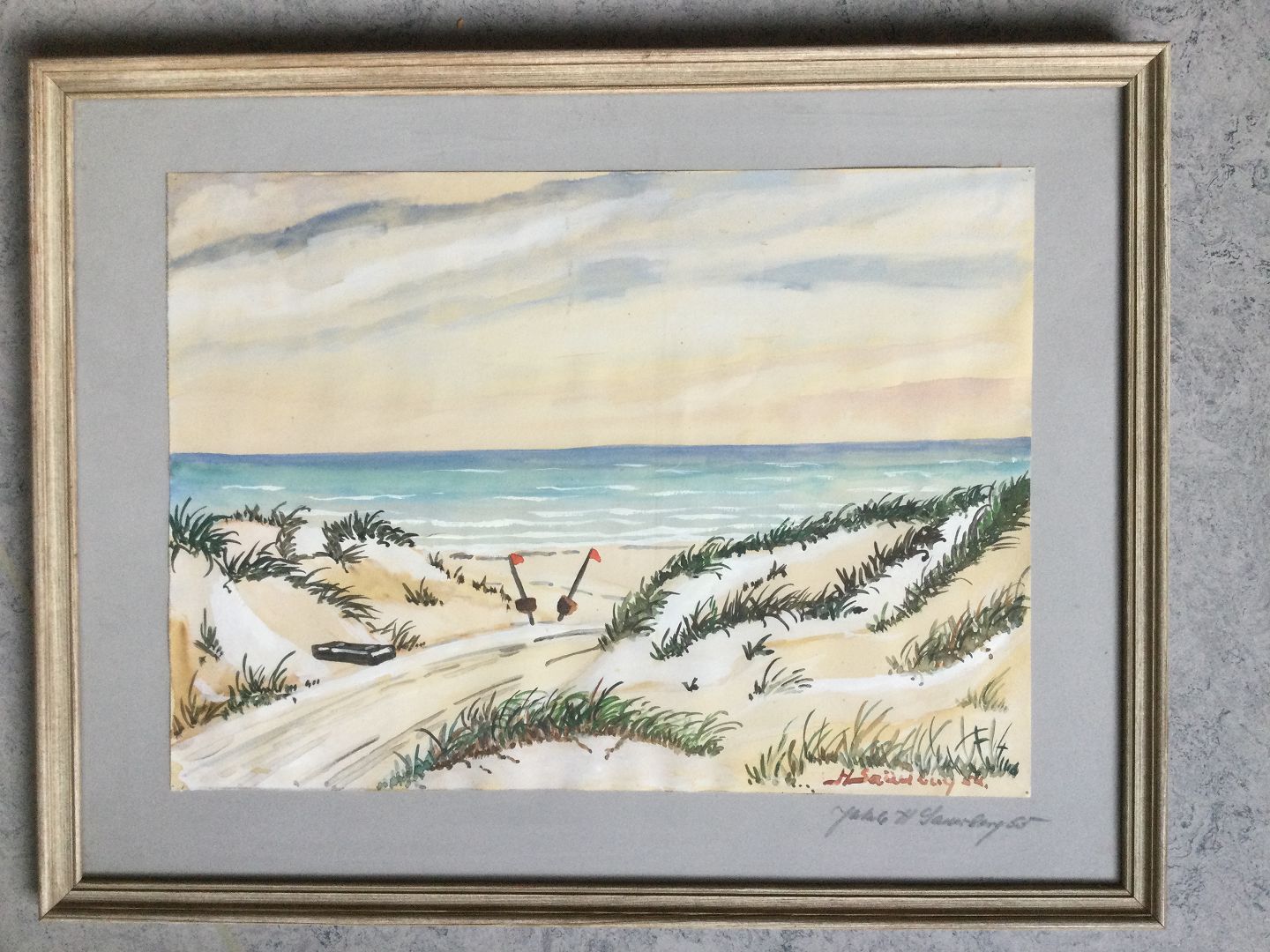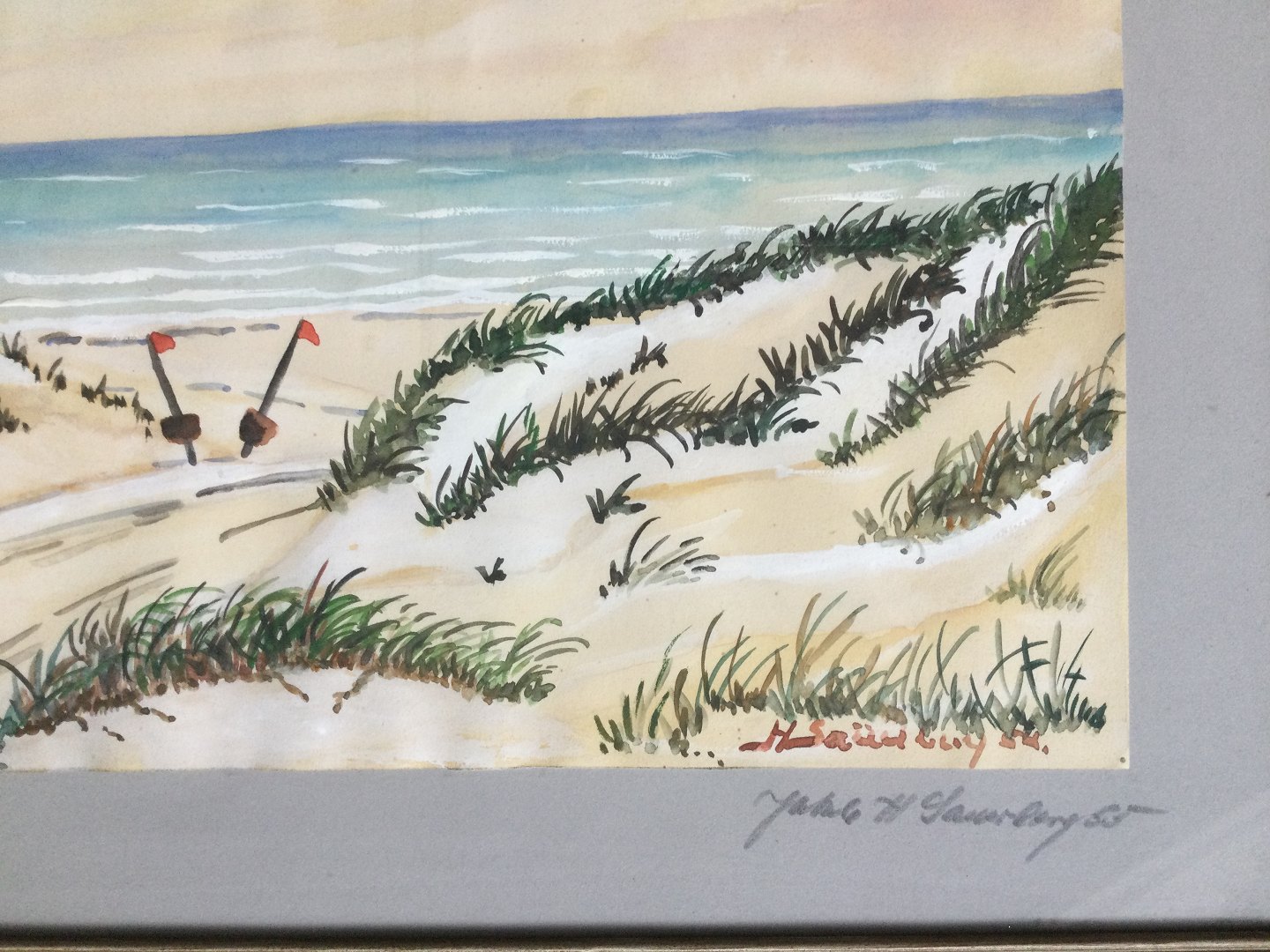 Akvarel af Jacob Heymann Sauerberg - Strandparti med klitter 1955.