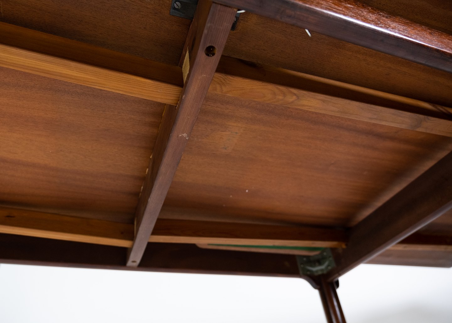Bordet er i flot vintagestand, hvilket afspejler den omhyggelige vedligeholdelse og kvaliteten af håndværket. Med det hollandske udtræk kan bordet nemt tilpasses efter behov, hvilket gør det ideelt til både daglig brug og større sammenkomster.