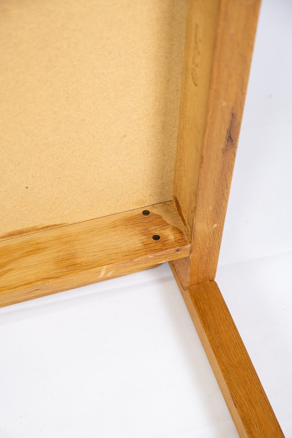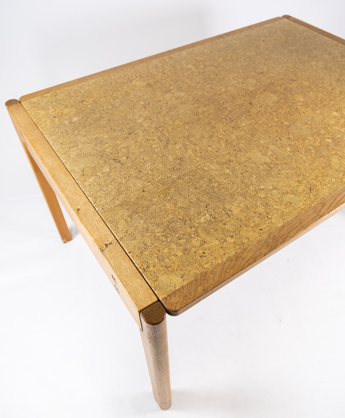 Spisebord af eg og kork af dansk design fra 1970erne. Bordet er i flot brugt stand.