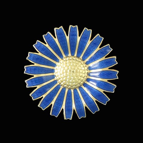 A. Michelsen Marguerit / Daisy Broche i forgyldt Sterling Sølv med blå emalje - 43mm