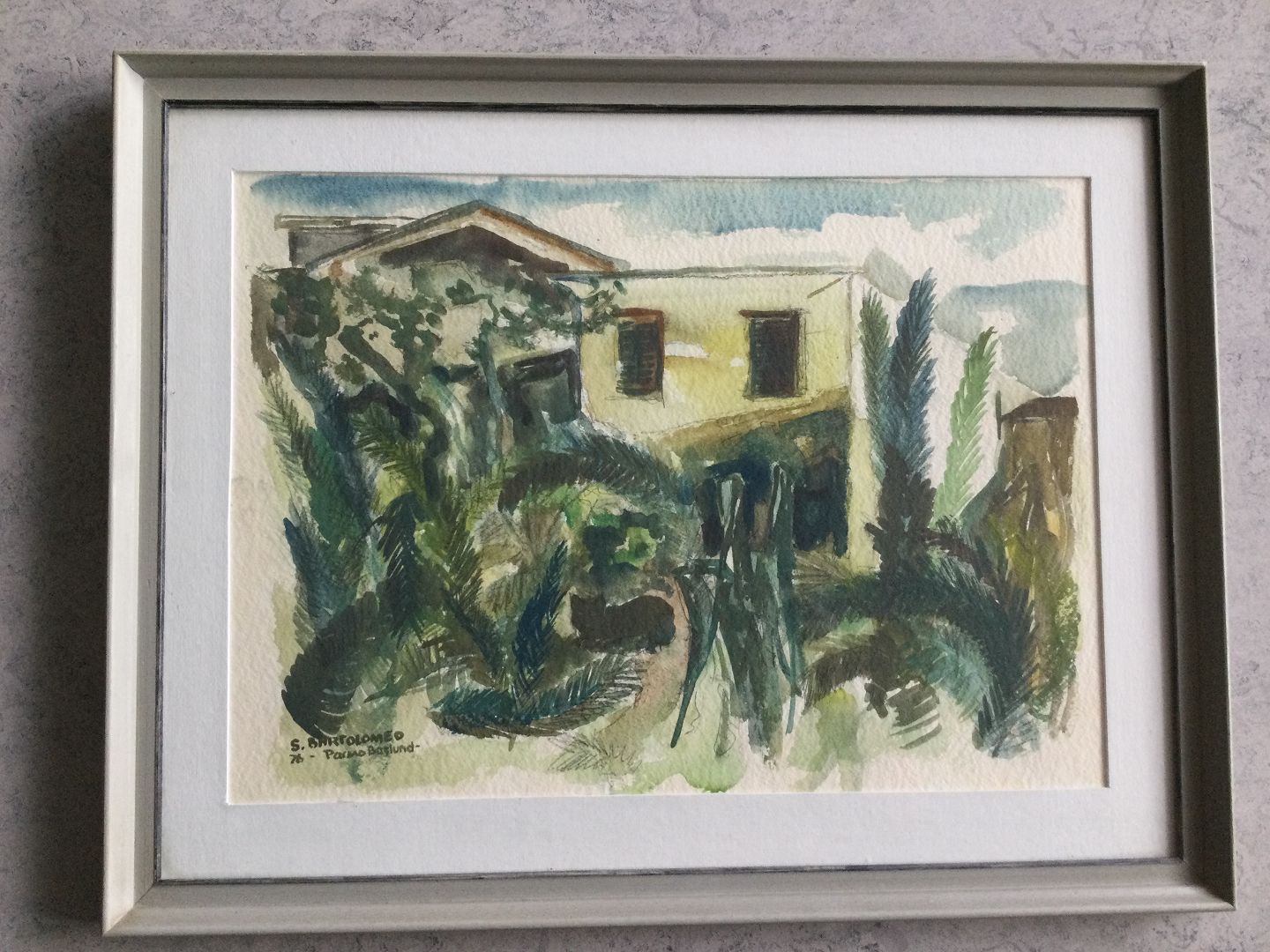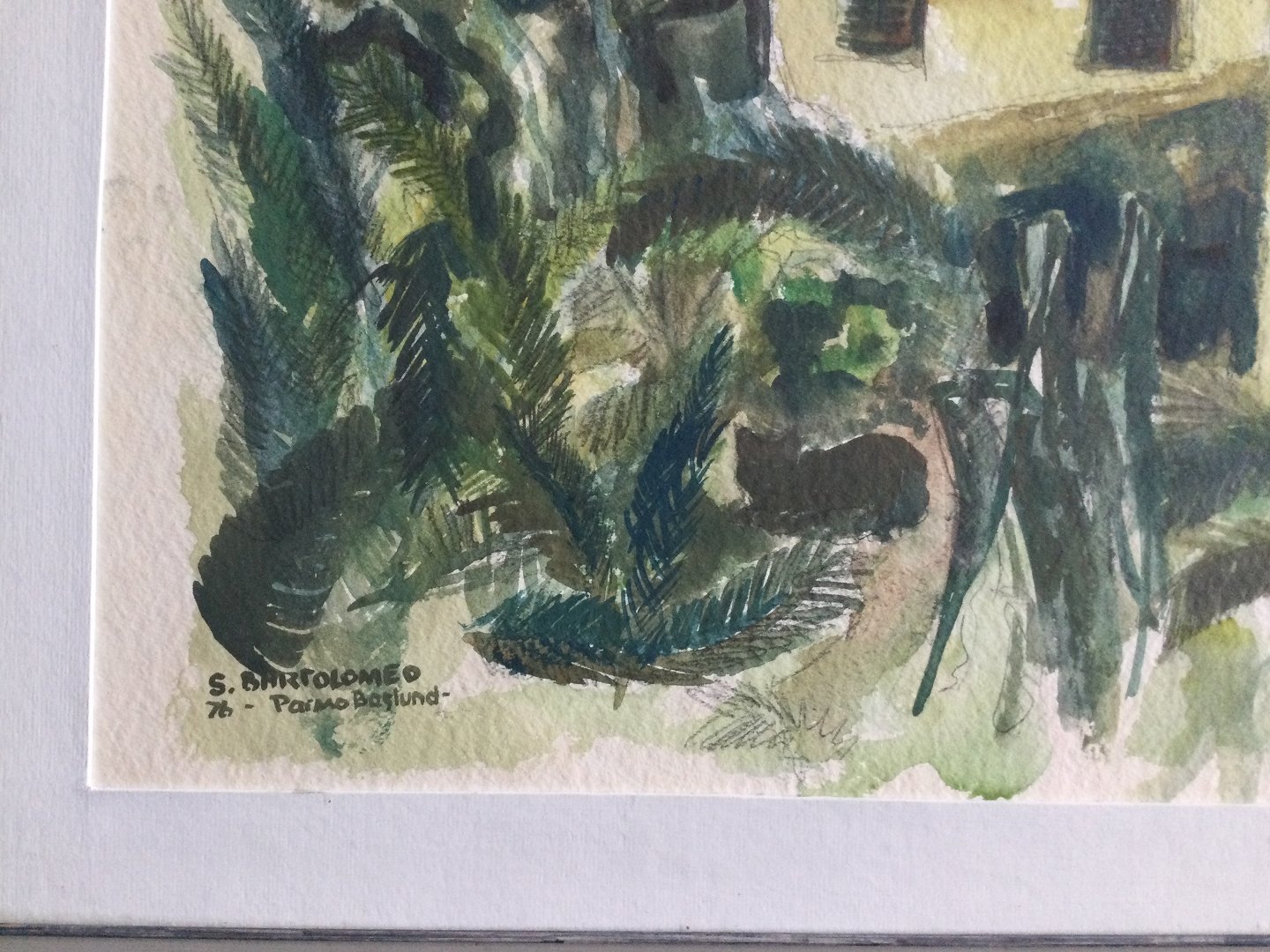 Akvarel af Parmo Baslund - Parti fra San Bartolomeo, Italien 1976.