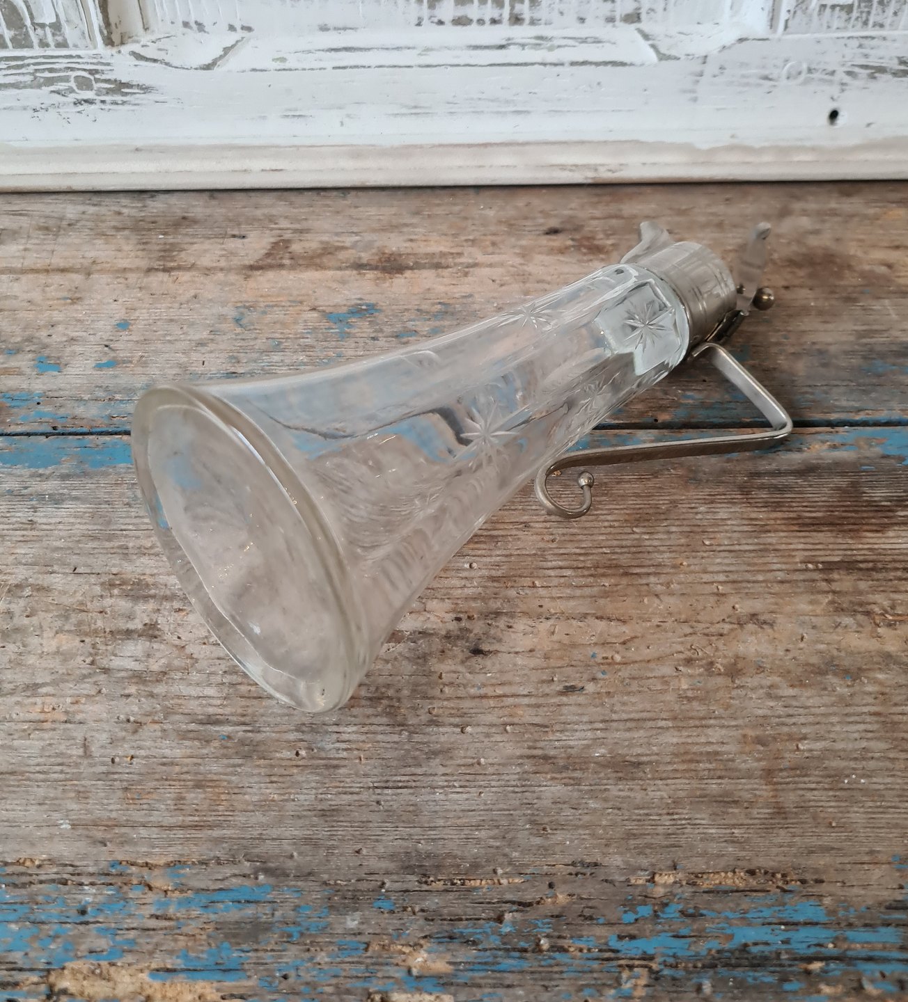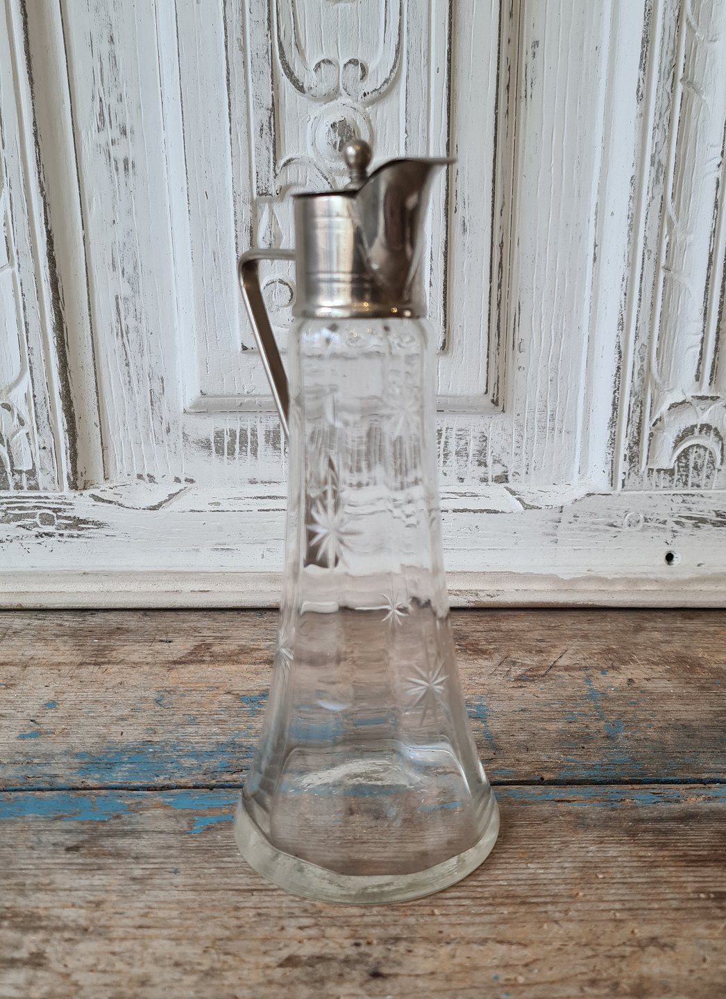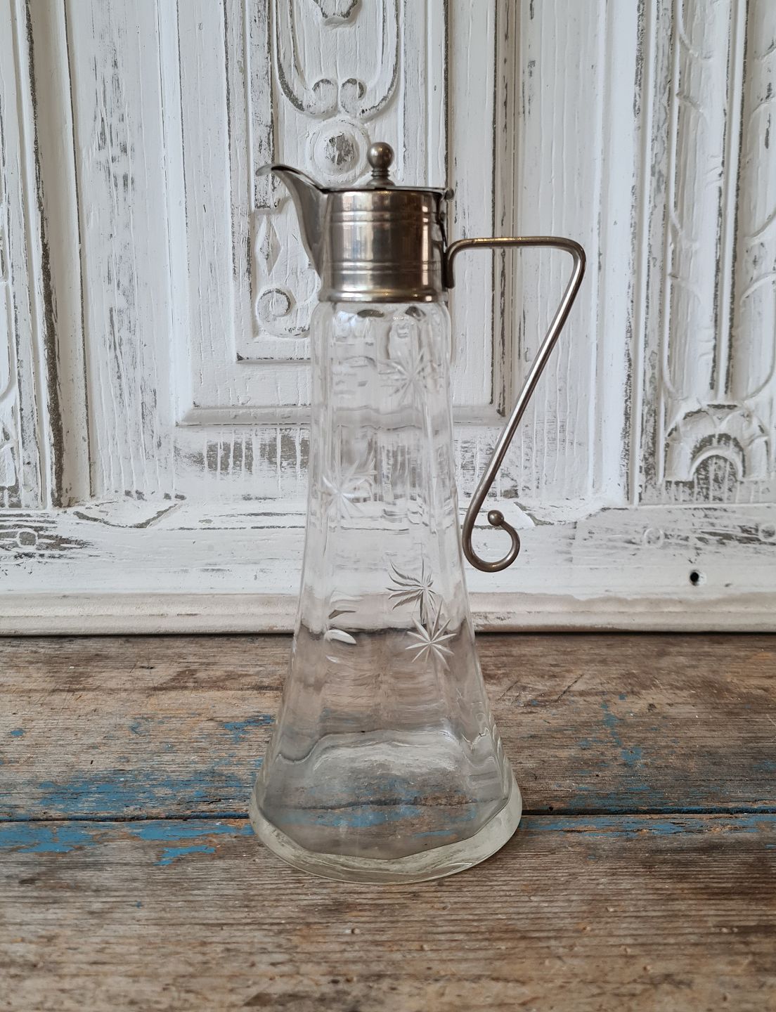Lille vinkande i glas med forniklet montering, dekoreret med slibninger af måne og stjerner 21 cm.