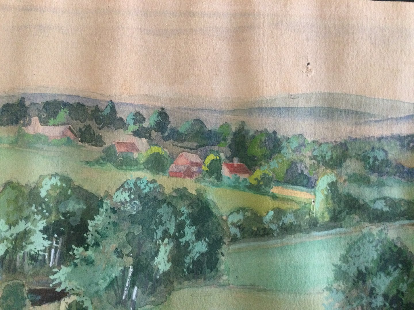 Akvarel af Erik Jahnsen - Landskab ved Torsby i Sverige 1951.
