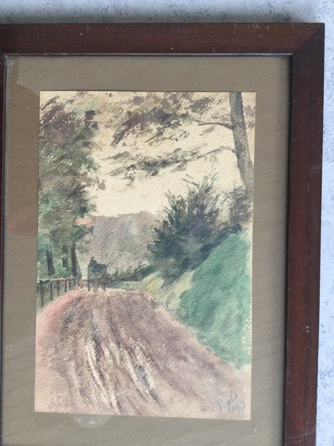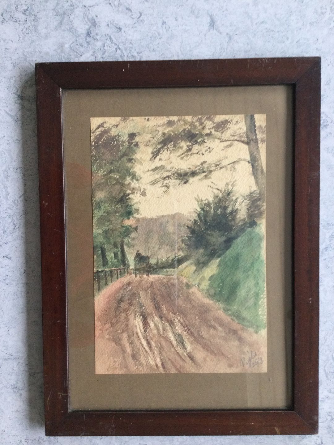 Akvarel - Hestevogn på vej ved Vejle.
