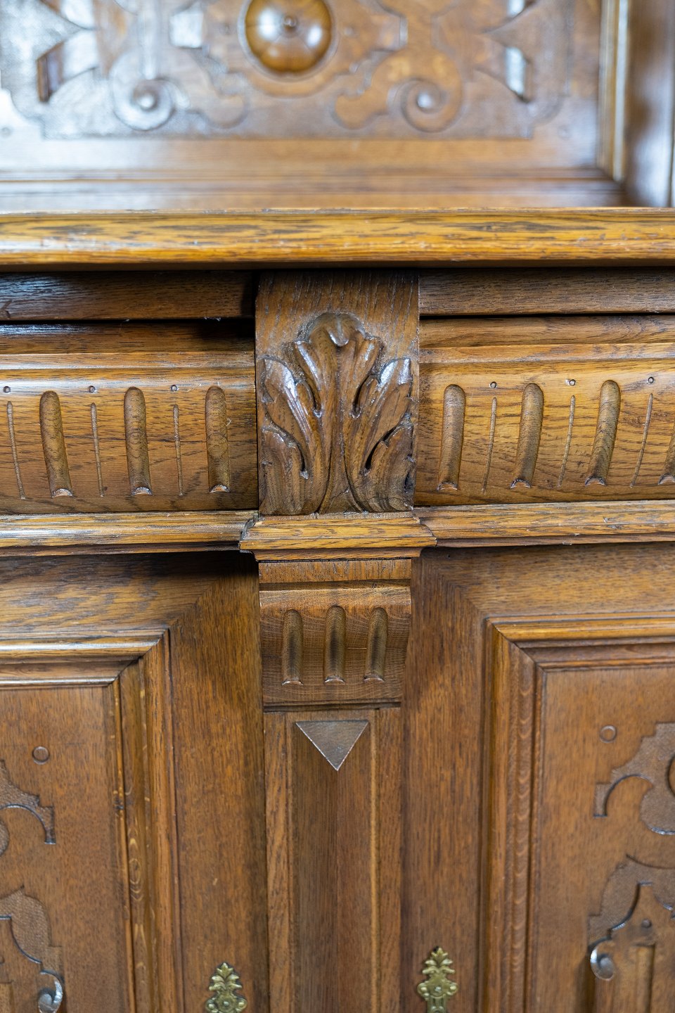 Large cabinet of oak with carvings, in great antique condition from the 1920s.
