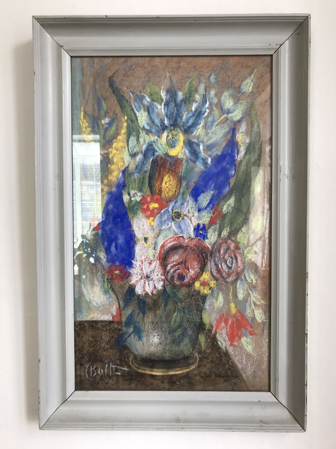 Pastel med tulipaner og andre blomster af Bolt. Mål med ramme 43 x 63