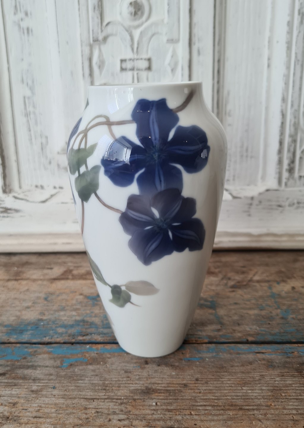 B&G Artnouveau vase decorated with blue clematis no. 6523/45 - 16.5 cm.