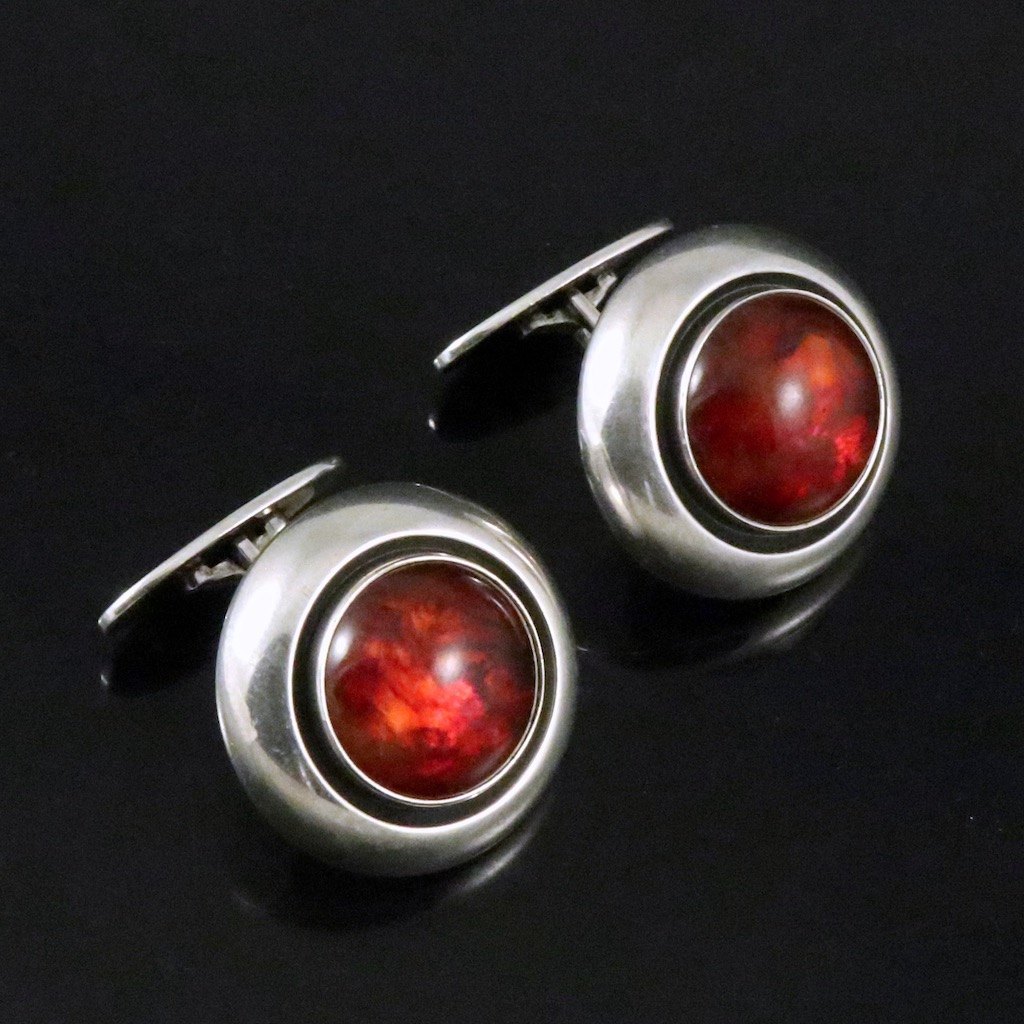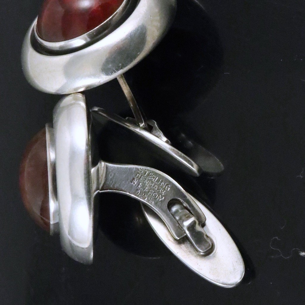 N.E. From. Manchetknapper i sterlingsølv med rav. 1960erne.