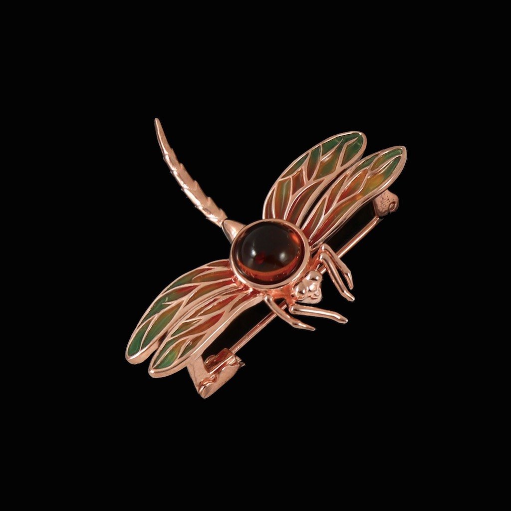 House of Amber - CPH. Dragonfly Brooch with Amber.