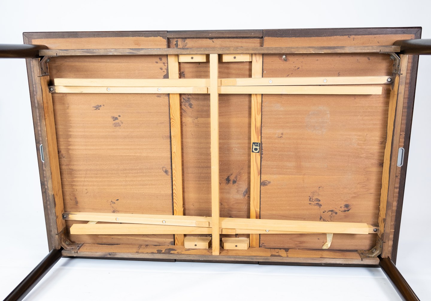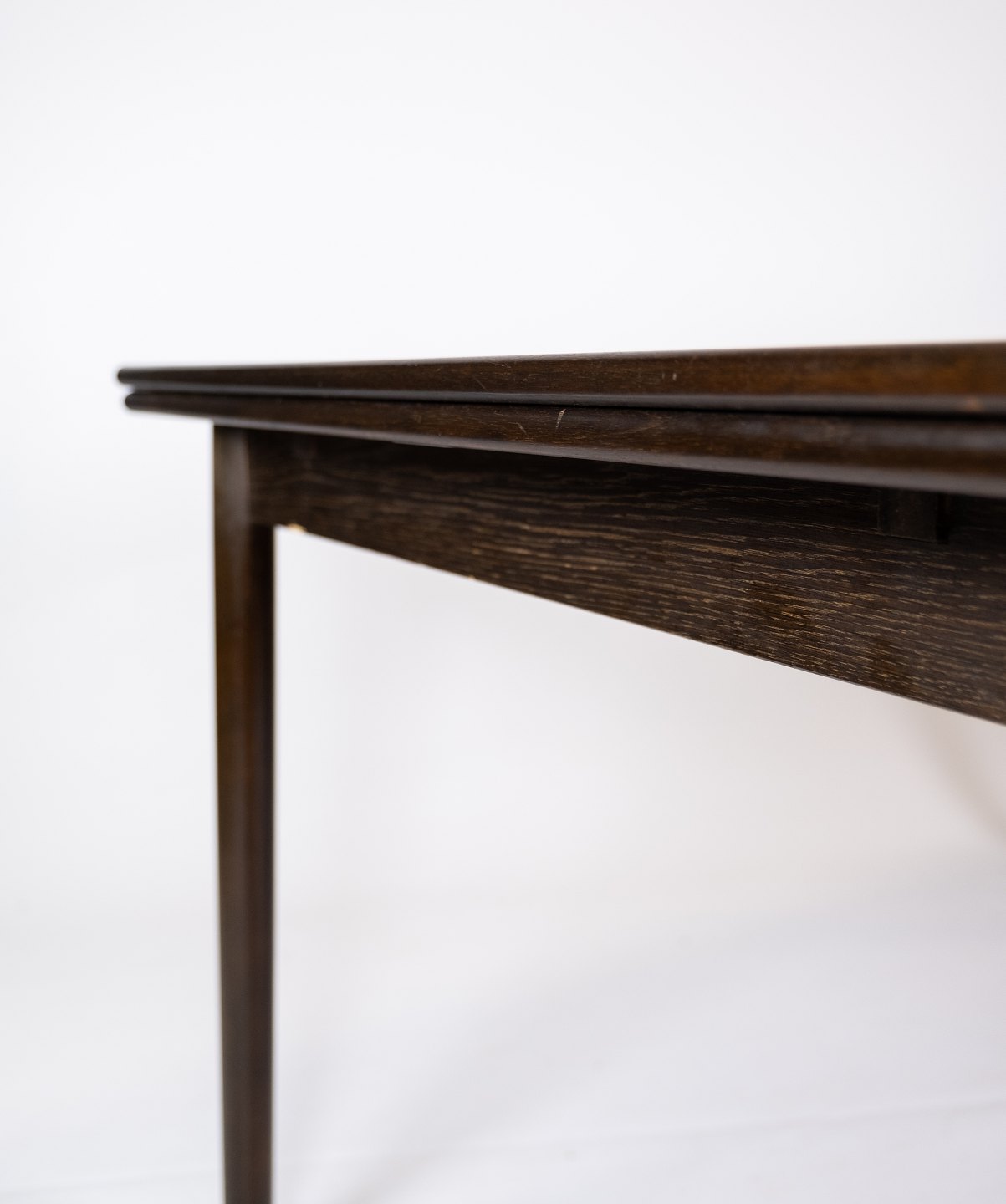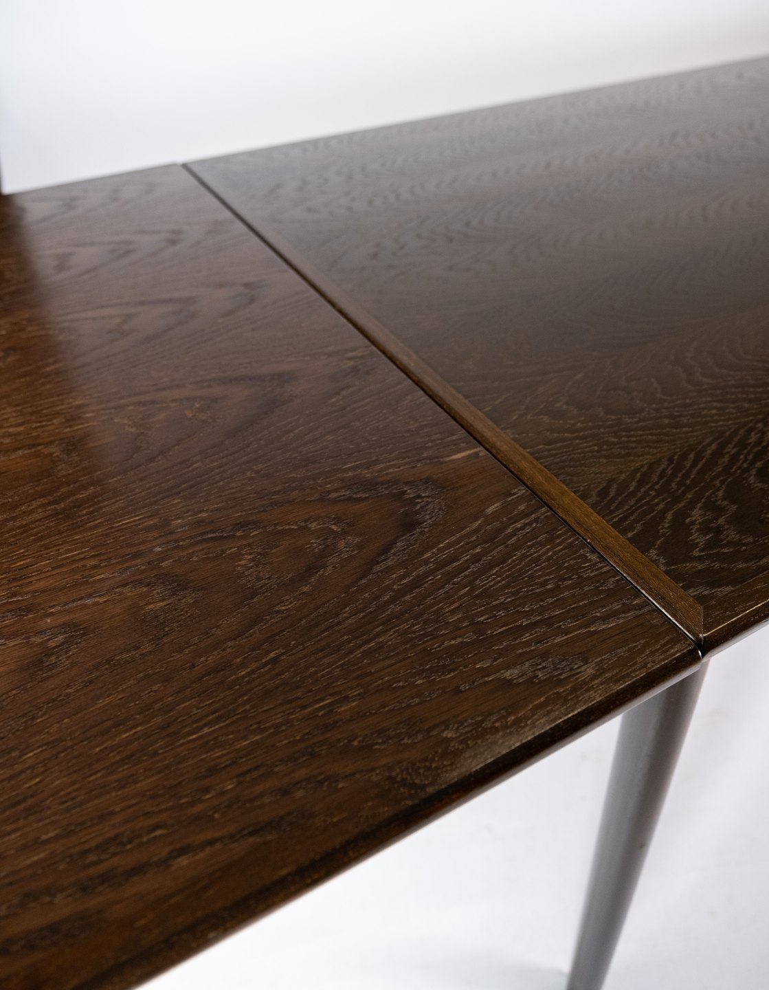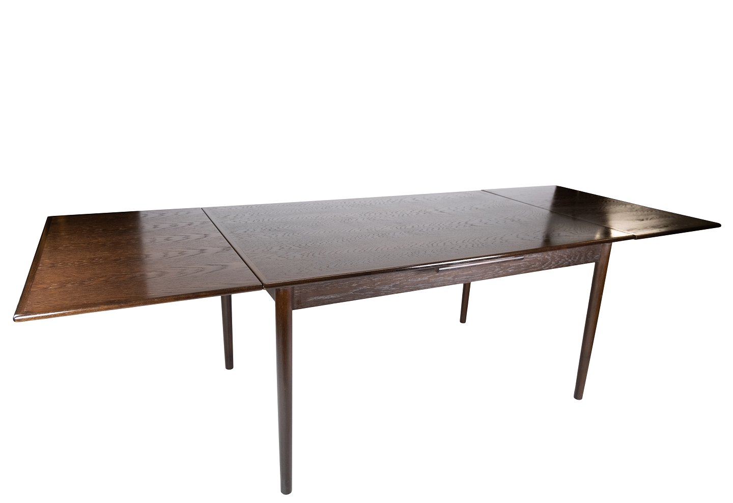 Spisebord i mørk eg med hollandsk udtræk af dansk design fra 1960erne.