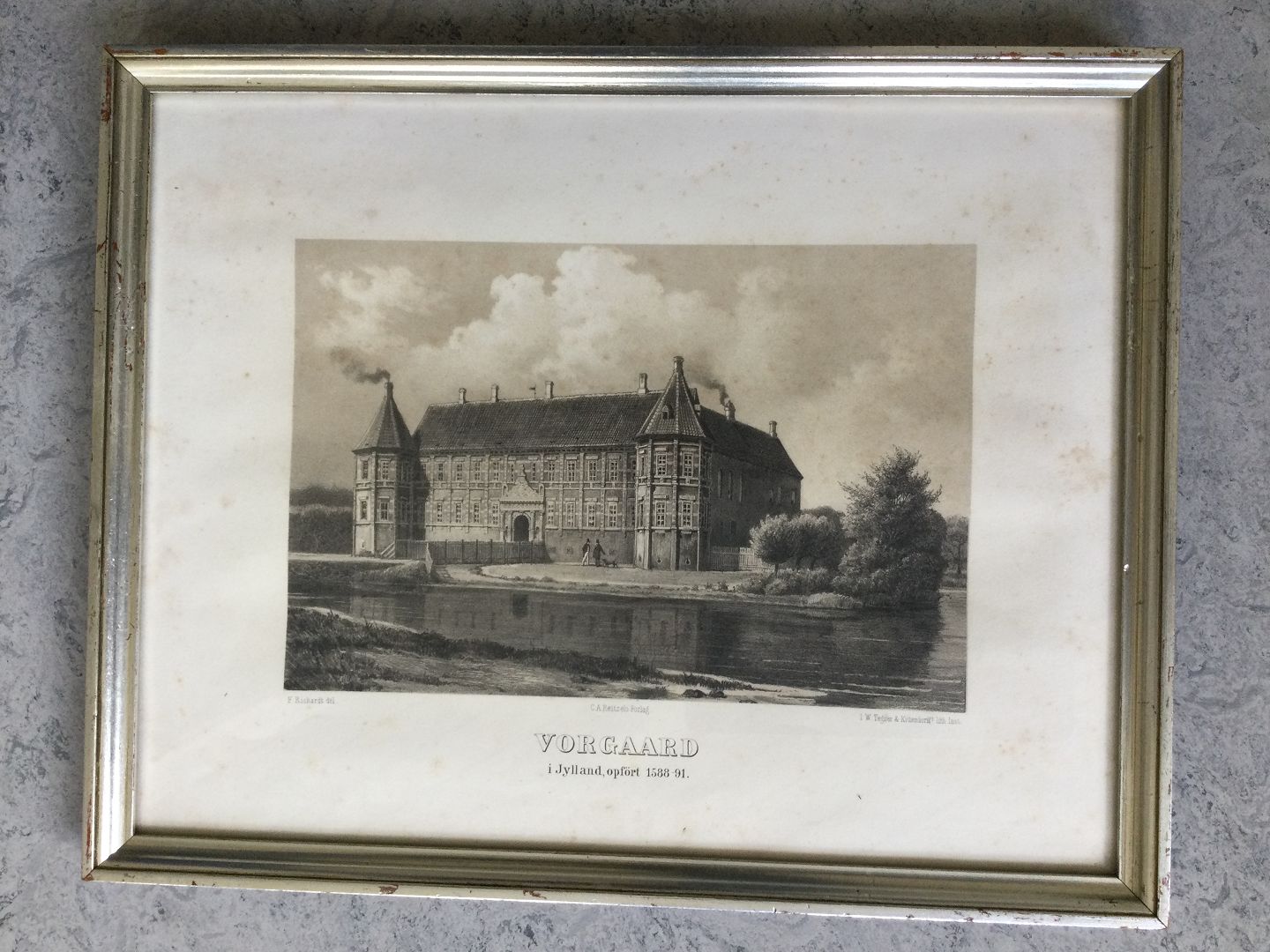 Litografi af Voergaard Slot i Vendsyssel ca. 1850.