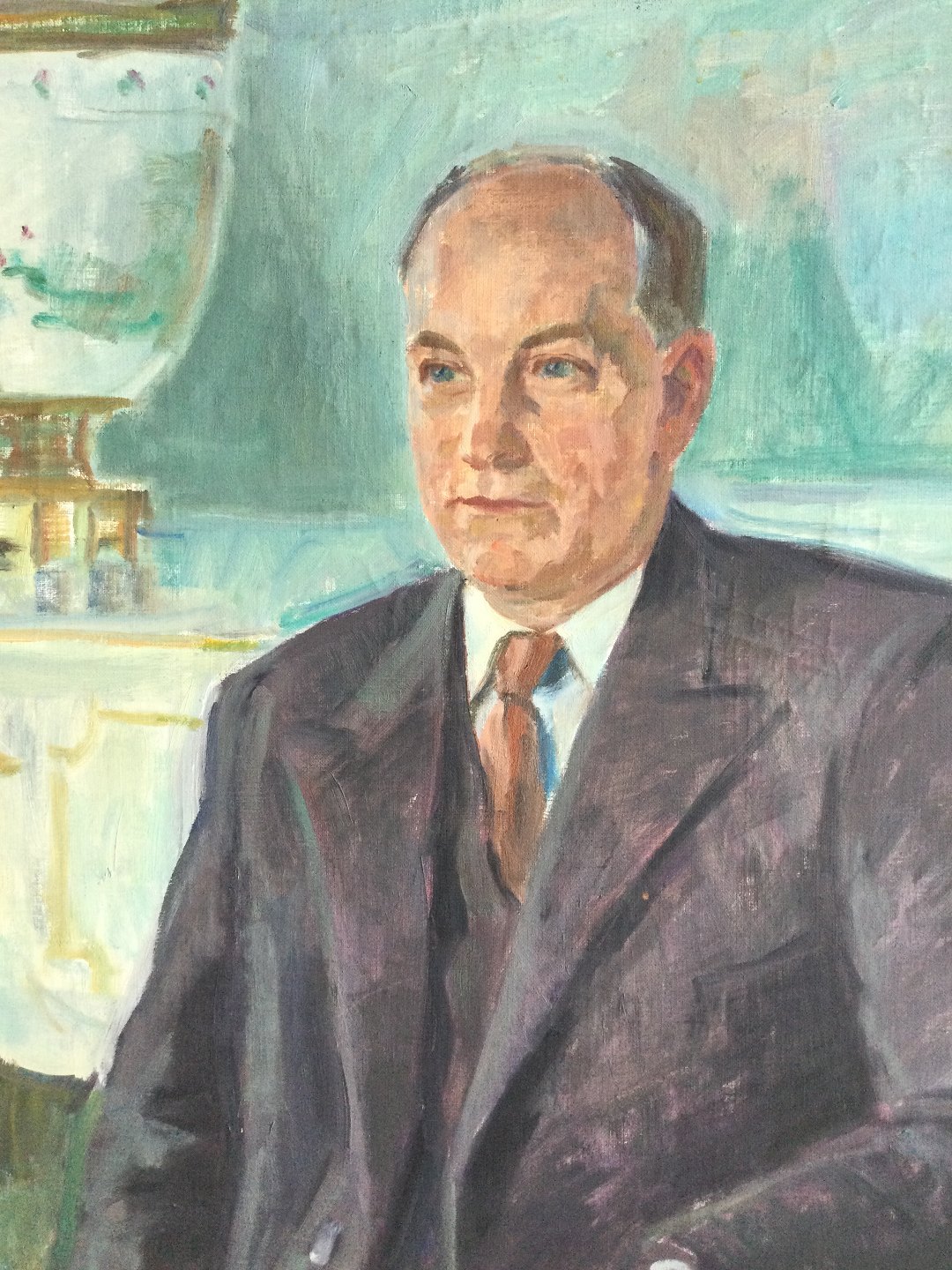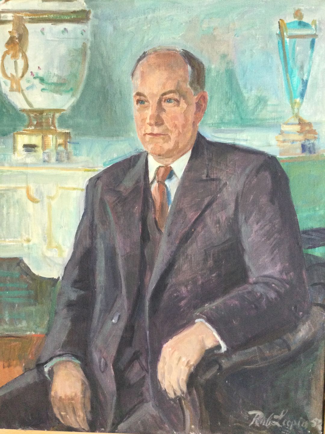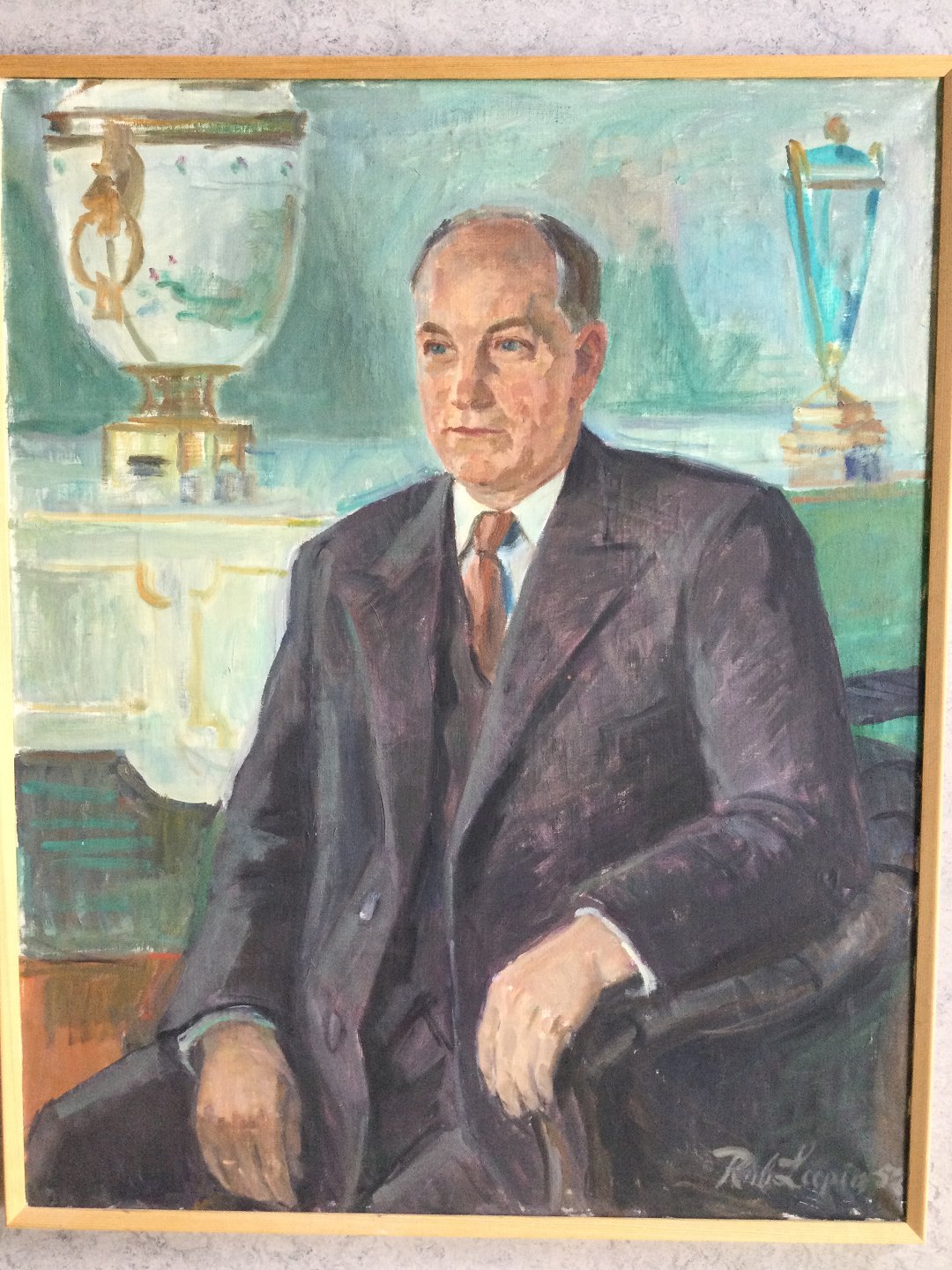 Maleri af Robert Leepin 1952 - Siddende herre i interiør.