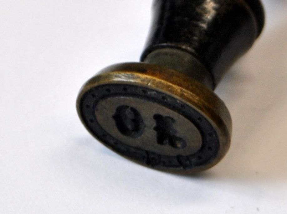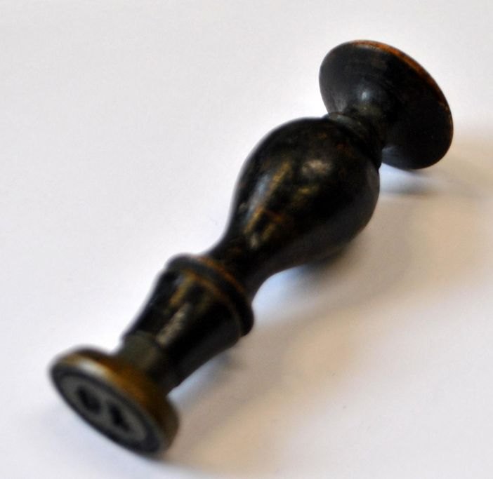 Segl, 19. årh. Danmark. Sort malet træskaft og messing.
