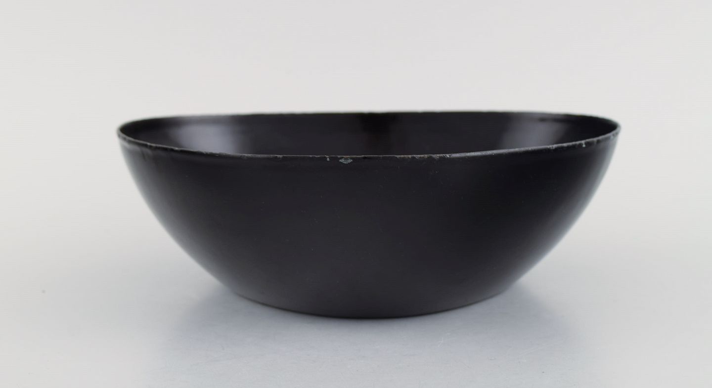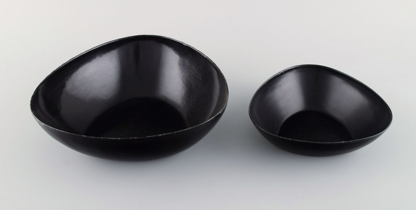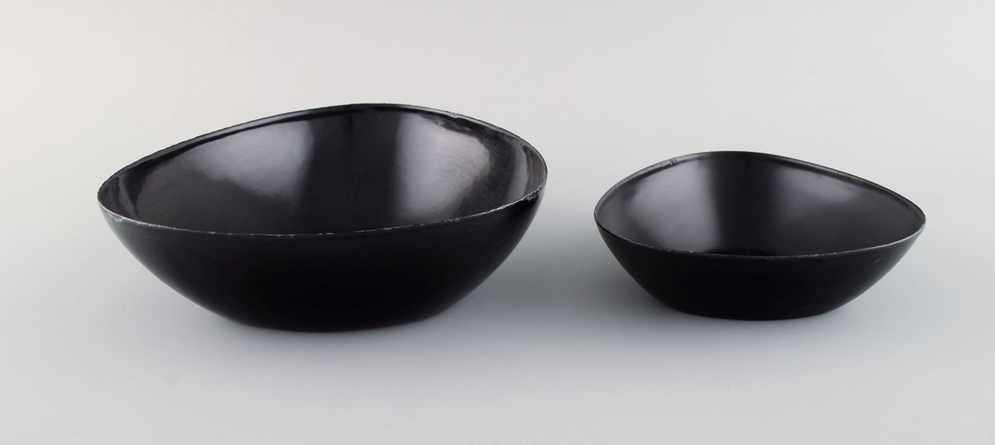 Kockum, Sverige. To skåle i sort emalje. 1970'erne.