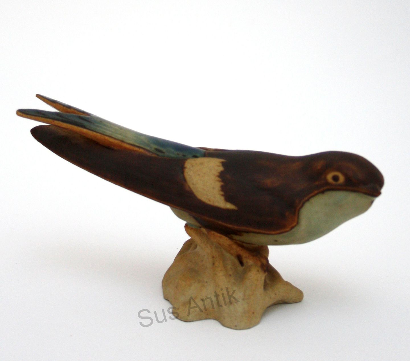 Bing & Grøndahl, Svale i stentøj, nr. 1775. Designet af Dahl Jensen. Længde 16 cm. Højde 8,5 cm. II. sortering fin og hel stand. Pris: 575 kr.