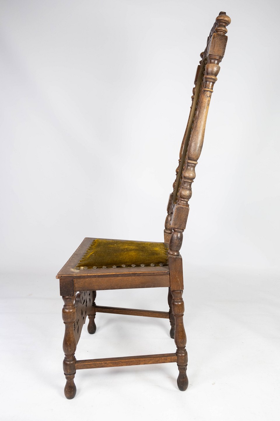 Antik stol af eg med udskæringer i renæssance stil, i flot stand fra 1880erne.