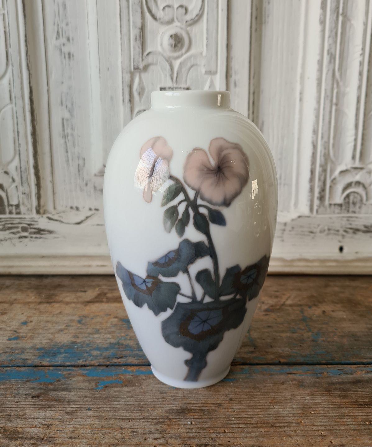 Royal Copenhagen Art Nouveau vase dekoreret med pelargonie no. 580/47C