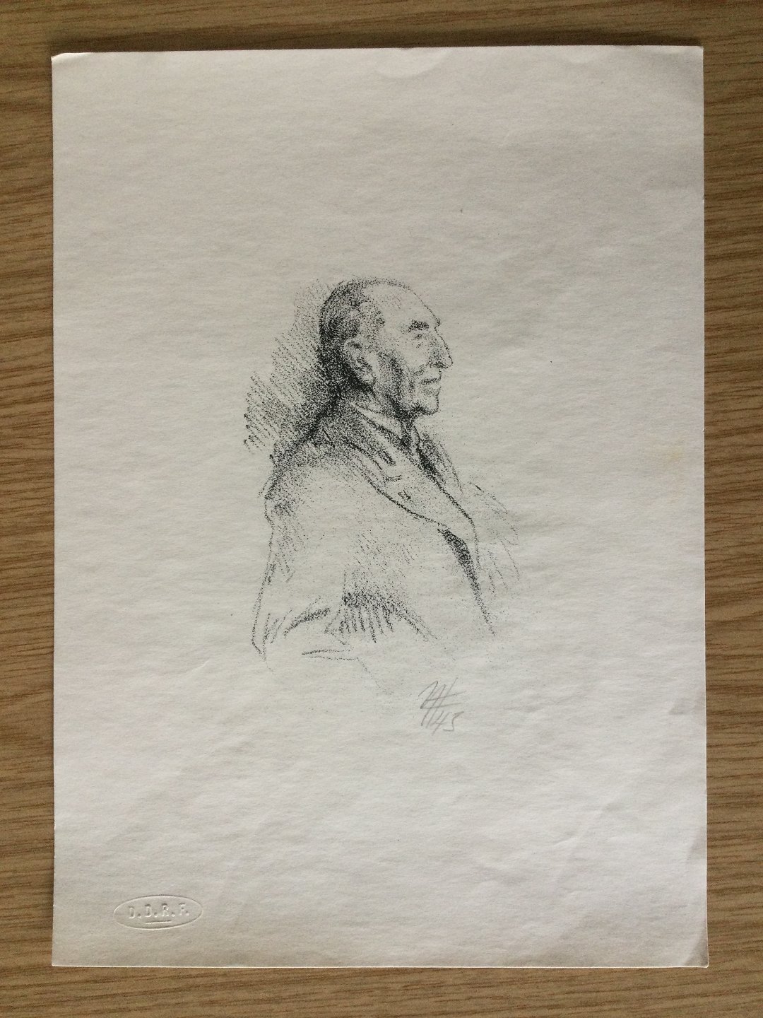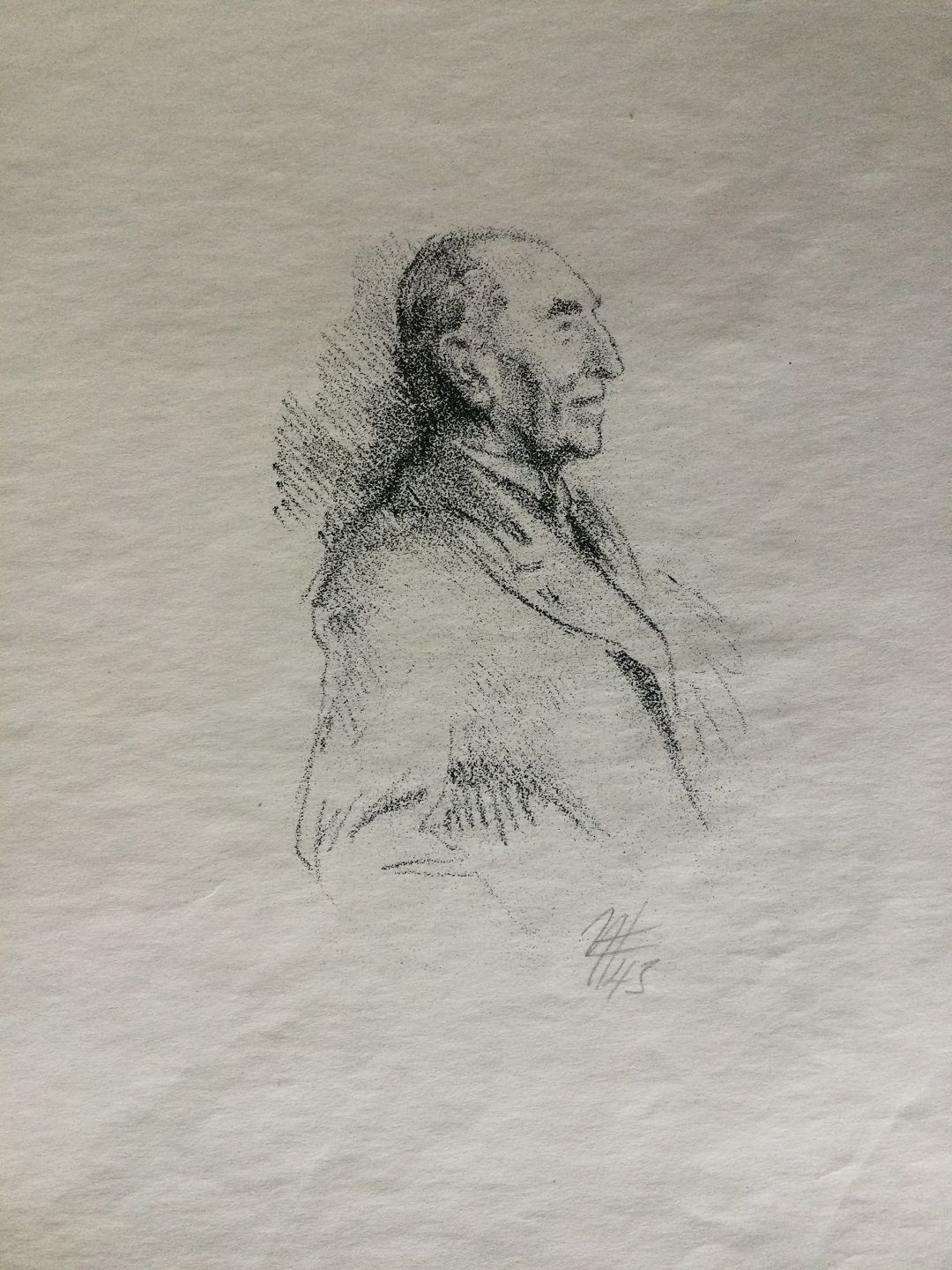 Litografi af Einar Utzon-Frank - Portræt af Max Müller 1943.