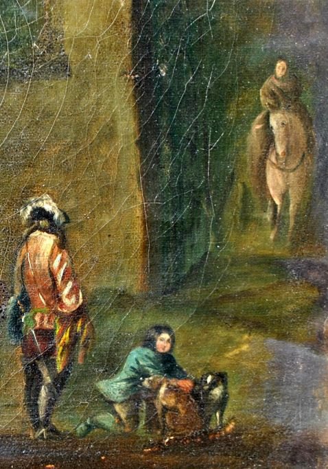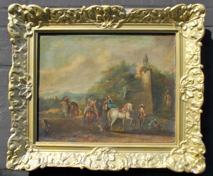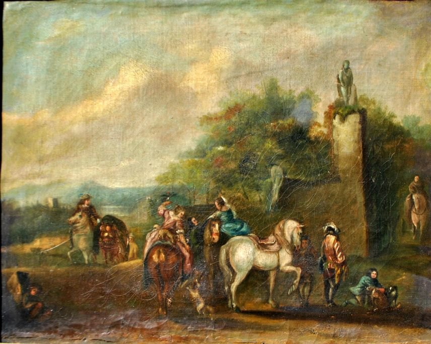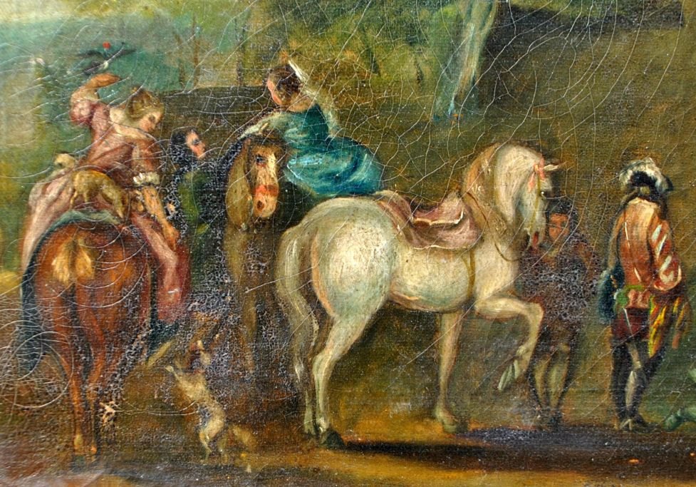 English artist (18th century) English landscape with nobles hunting falcons. Oil on canvas. Unsigned. 36 x 46 cm