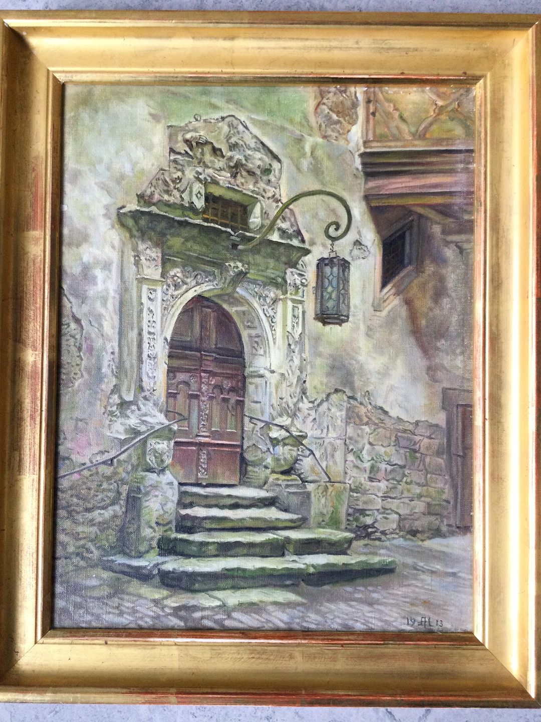 Maleri 1913 - Indgangsportal til det gamle rådhus i Rothenburg.