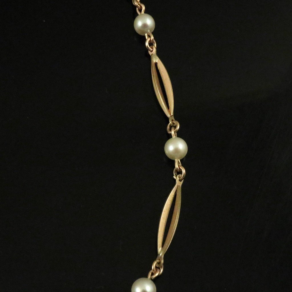 Hermann Siersbøl. Halskæde i 14k guld med perler. 1960erne.