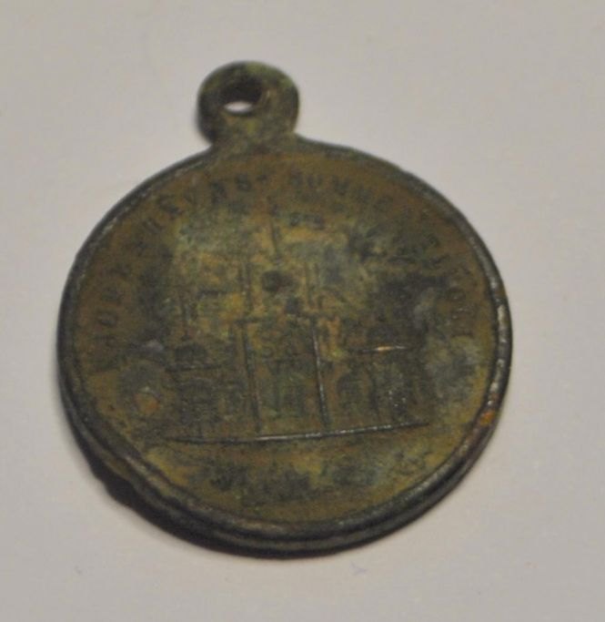Erindringsmedalje fra Ballon opstigningen i Københavns Sommertivoli. 19. årh. Kobber. Dia.: 2,1 cm.  Fremstår urengort!