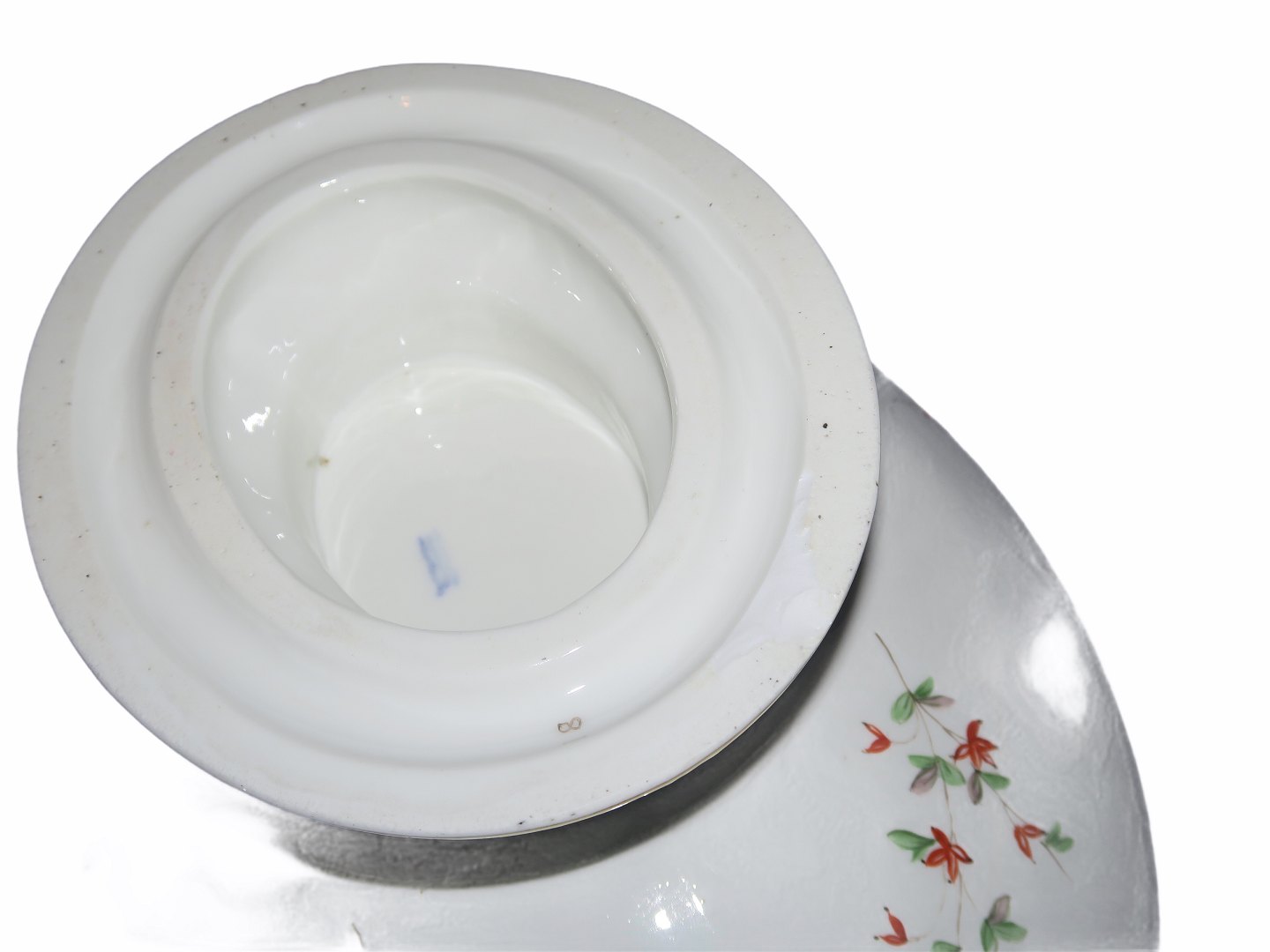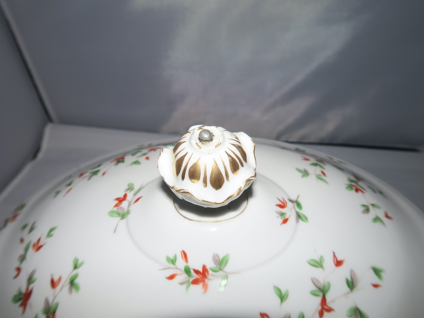 Der er et skår på bunden på ståkanten og der er isat en metalskrue på lågknoppen (muligvis original) ellers perfekt stand uden fejl.