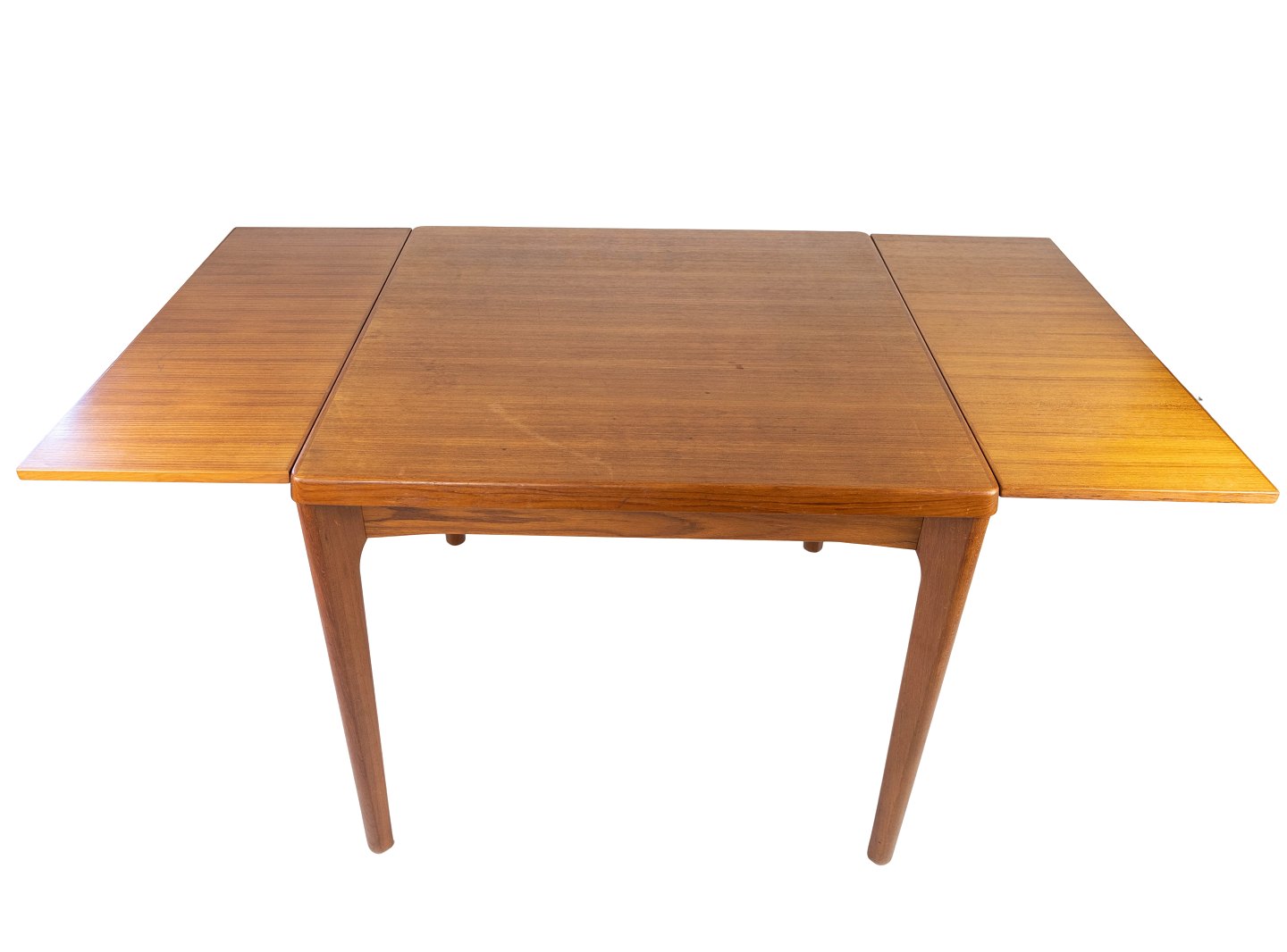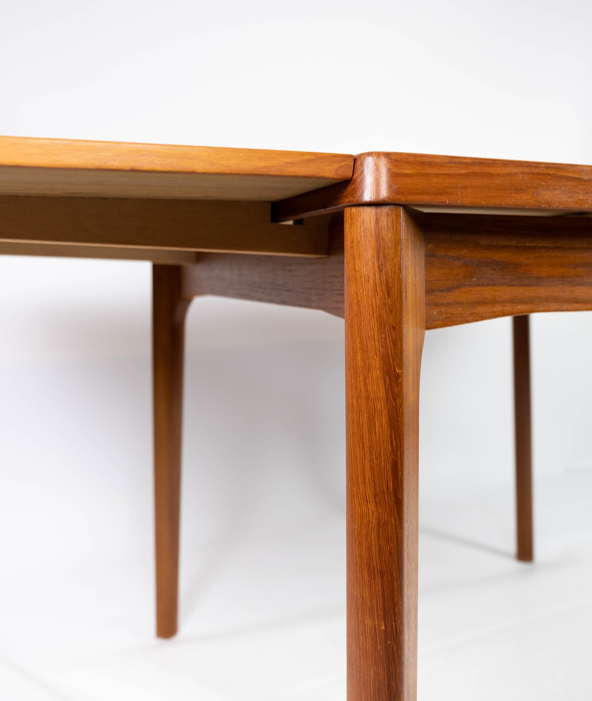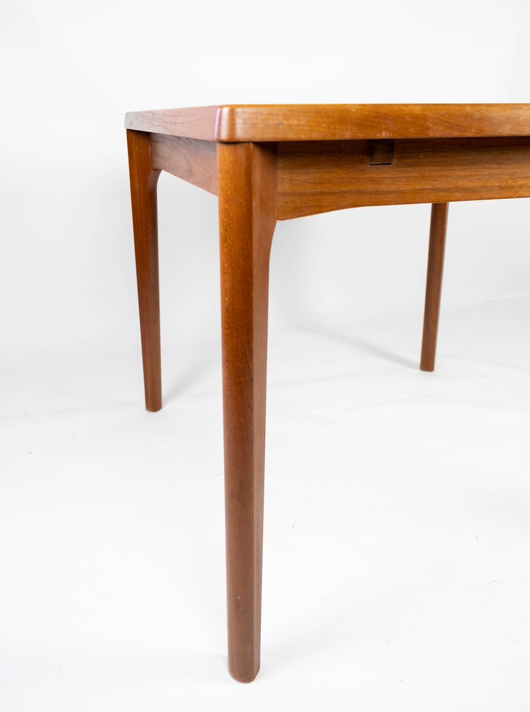 Spisebord med udtræk i teak designe af Henning Kjærnulf fra 1960erne. Bordet er i flot brugt stand.